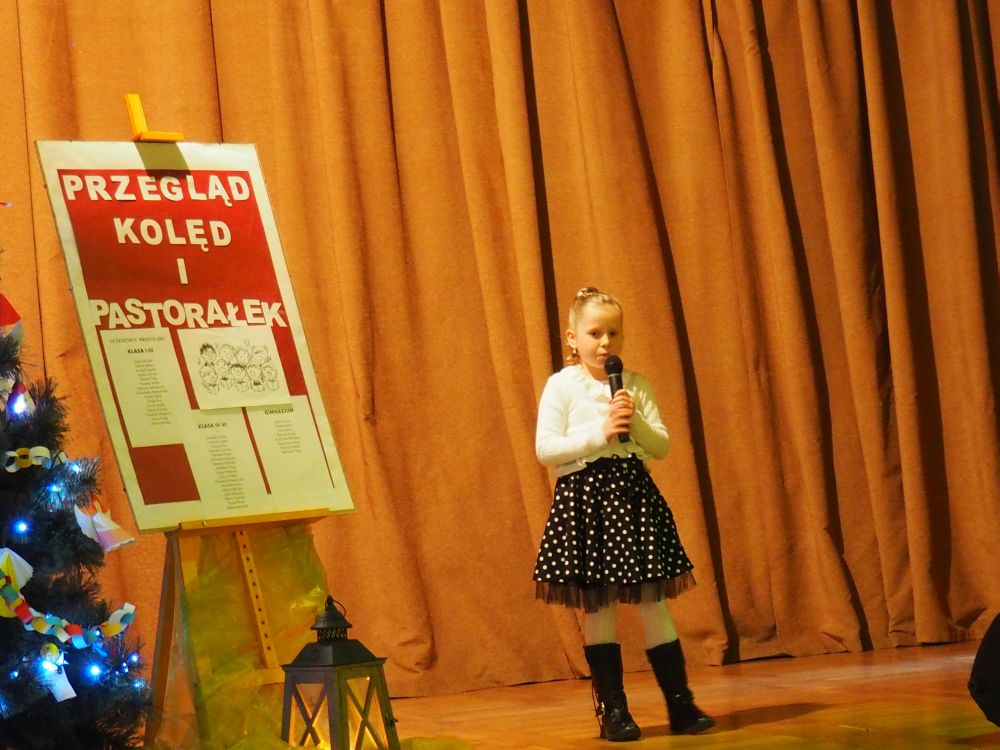 II miejsce – Dominika Materowska z klasy V. Dominika zaśpiewała pastorałkę „Puk, puk, puk”.