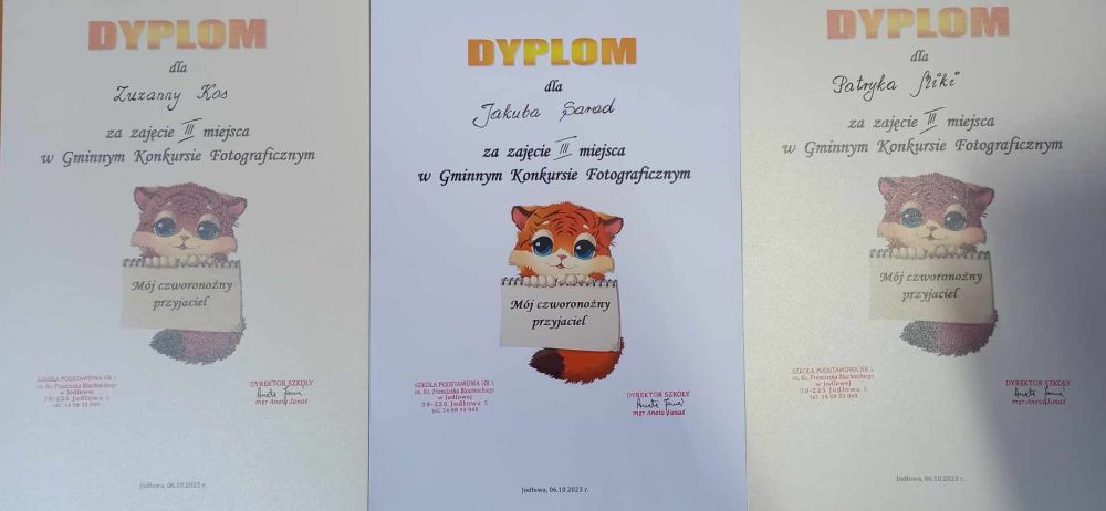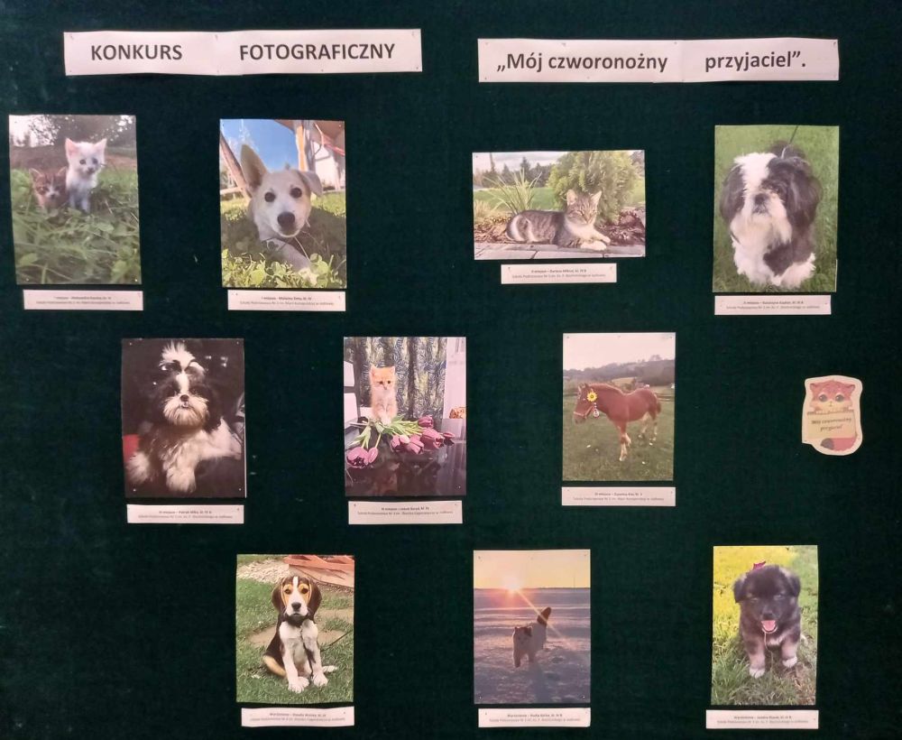 Gminny konkurs fotograficzny „Mój czworonożny przyjaciel” skierowany był do uczniów klas III- V z terenu Gminy Jodłowa. Okazją był przypadający Światowy Dzień Zwierząt w miesiącu październiku. Konkurs cieszył się dużym zainteresowaniem. Nadesłano 40 zdjęć zwierząt domowych, głównie psów i kotów, które są pupilami i najlepszymi przyjaciółmi człowieka.