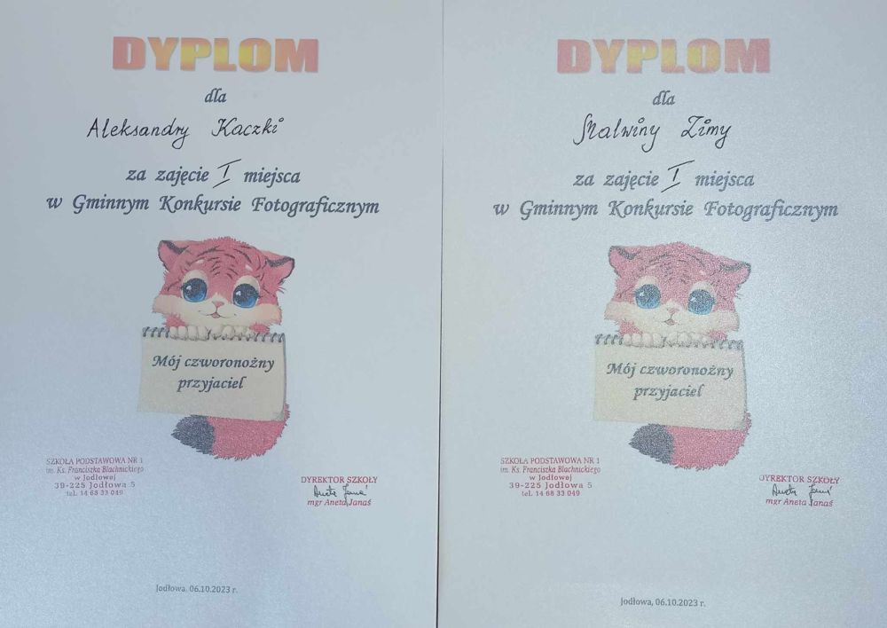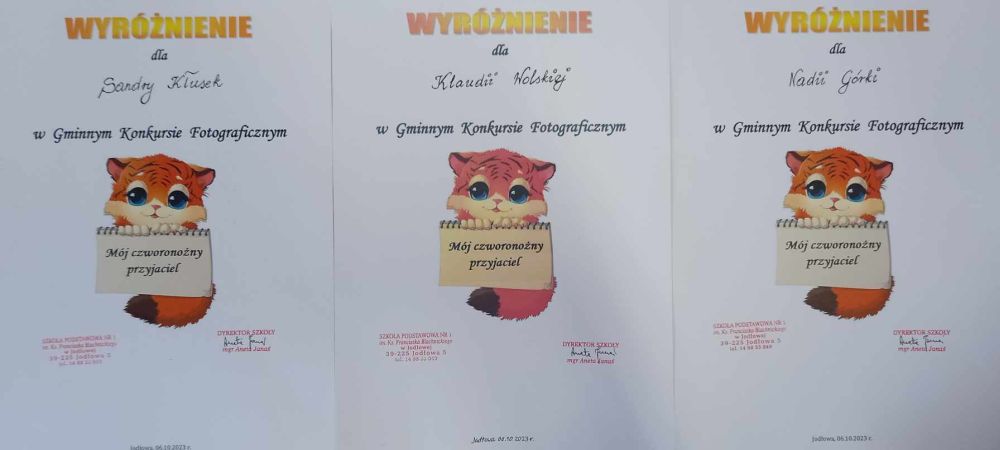 - Klaudia Wolska, kl. IV,Szkoła Podstawowa Nr 3 im. Zbyszka Cyganiewicza w Jodłowej.