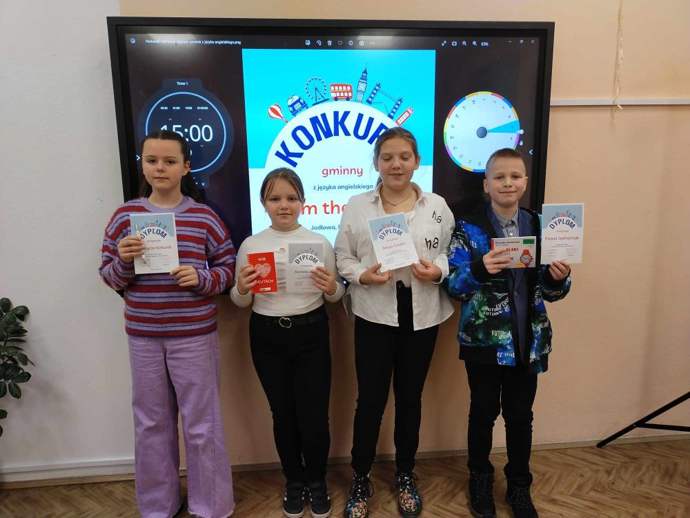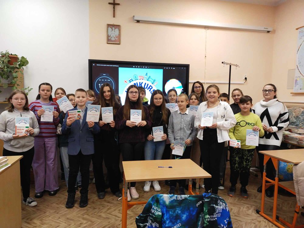 22 listopada 2023r. Maya Czapla, Paweł Jędrzejczyk, Kornelia Stręk oraz Patrycja Kołczak reprezentowali naszą szkołę w gminnym konkursie leksykalnym z języka angielskiego I’m the best! Cieszymy się, że wszyscy nasi uczniowie uplasowali się w pierwszej dziesiątce, a Maya Czapla zdobyła I miejsce.