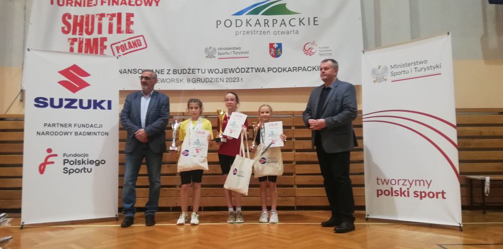 Sukcesem zakończył się udział naszych uczennic w Finałowym Turnieju Shuttle Time w Badmintonie, który odbył się w sobotę w Przeworsku. W turnieju uczestniczyło ponad 120 osób w trzech kategoriach wiekowych. Na drugich miejscach w swoich kategoriach ukończyły turniej Nadia Górka i Aleksandra Baran natomiast na trzecim miejscu uplasowały się Oliwia Klucznik i Karolina Delikat. Na bardzo dobrym piątym miejscu ukończyła zawody Zuzanna Górka.