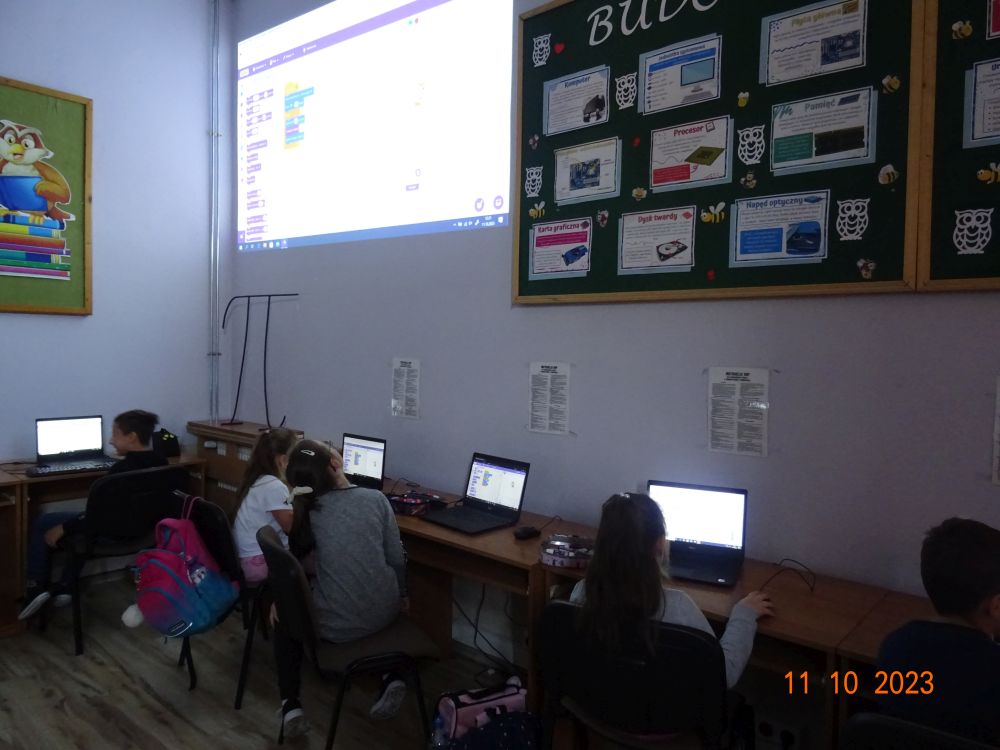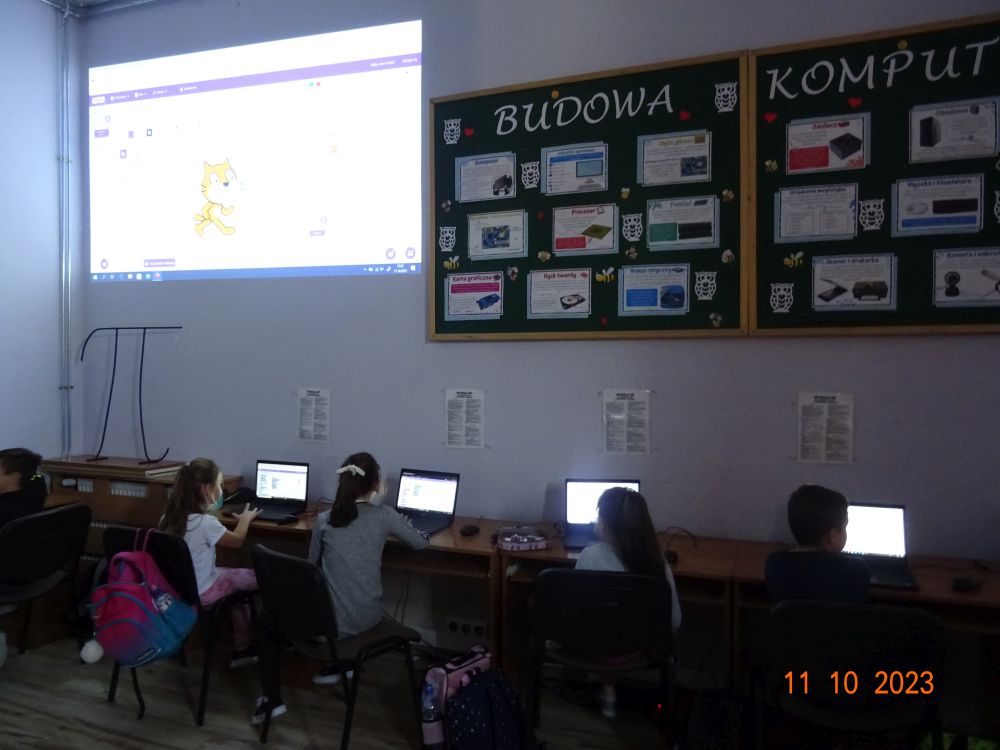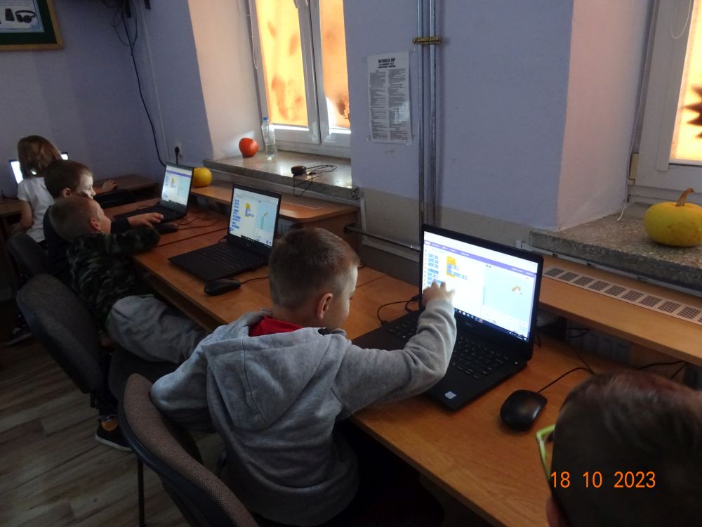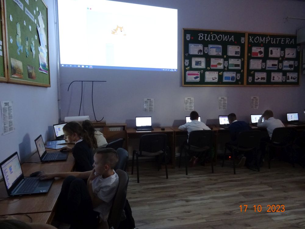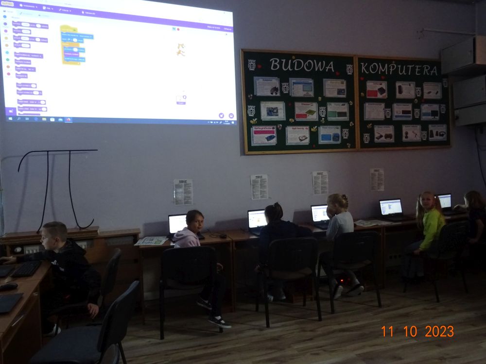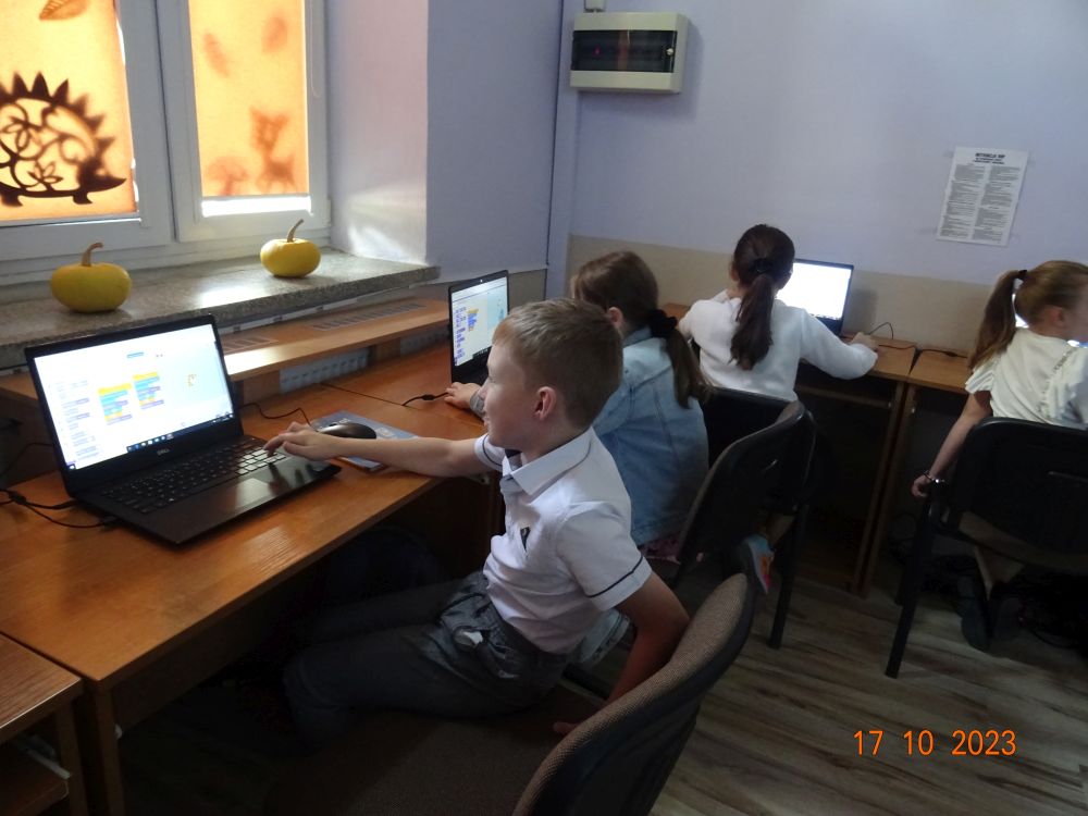 Nasza szkoła już piąty raz wzięła udział w Europejskim Tygodniu Kodowania Codeweek. Celem tego wydarzenia jest popularyzacja i promocja nauki programowania wśród dzieci, młodzieży i dorosłych. Uczniowie klasy 4A poznali kilka metod szyfrowania wiadomości. Korzystając z szyfru czekoladka odczytywali zaszyfrowane słowa oraz sami przygotowywali tajne wiadomości dla koleżanek i kolegów.Uczniowie klasy 4B uczyli kotka Scratcha latać. Uczestnicy kółka informatycznego z klasy 8 tworzyli gry w Scratch - gra w węża oraz scratchowa wersja gry Arkanoid. Natomiast uczniowie klas 2A, 2B i 3A tworzyli proste skrypty, dzięki którym duszek poruszał się, tańczył a nawet mówił wierszyk. W trakcie realizacji wydarzenia wykorzystano sprzęt zakupiony w ramach projektu Laboratoria Przyszłości.