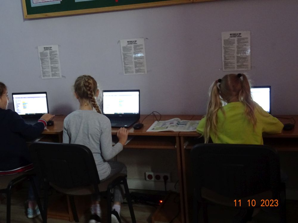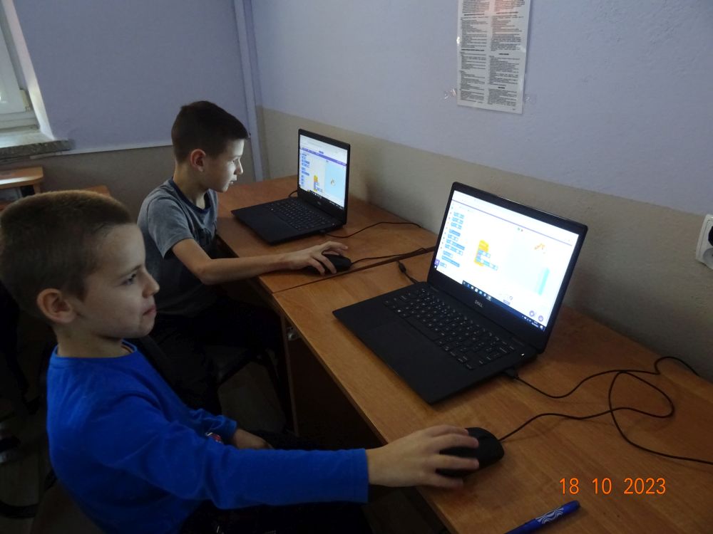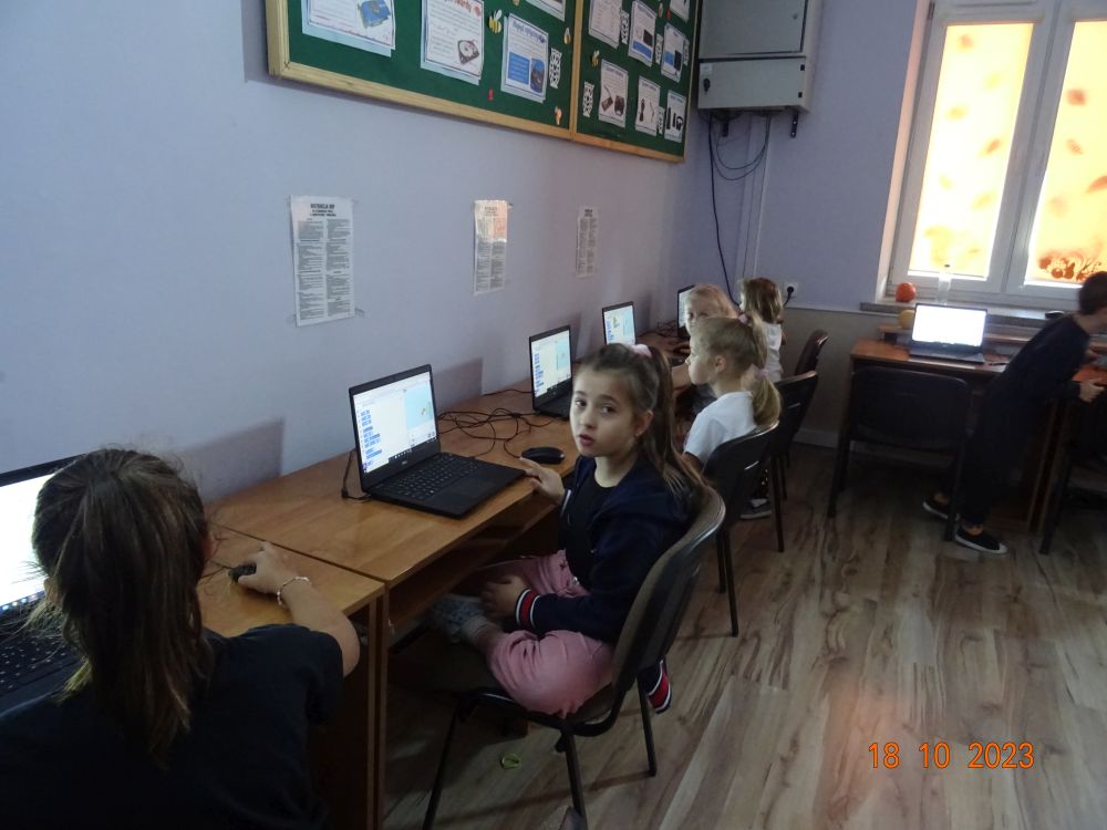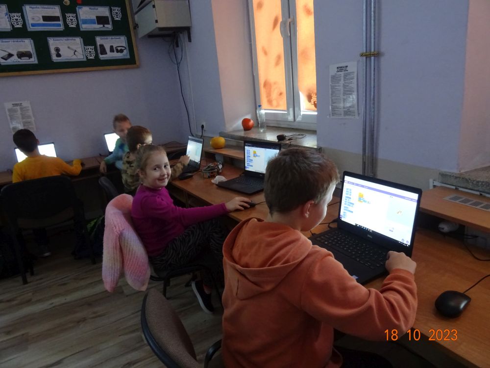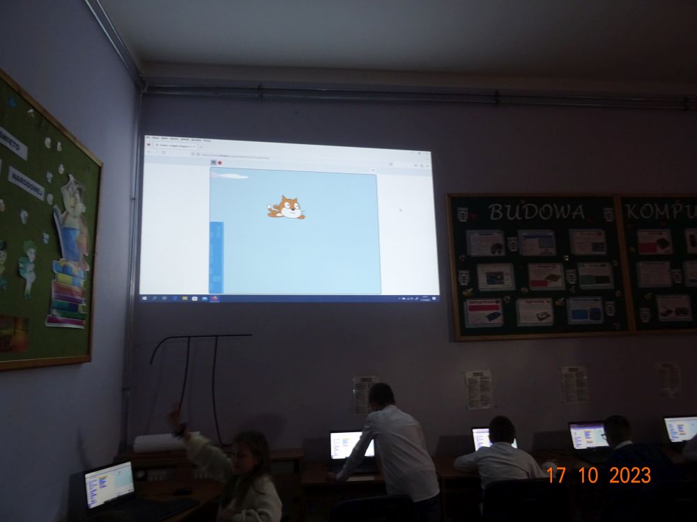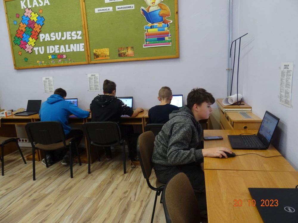 Nasza szkoła już piąty raz wzięła udział w Europejskim Tygodniu Kodowania Codeweek. Celem tego wydarzenia jest popularyzacja i promocja nauki programowania wśród dzieci, młodzieży i dorosłych. Uczniowie klasy 4A poznali kilka metod szyfrowania wiadomości. Korzystając z szyfru czekoladka odczytywali zaszyfrowane słowa oraz sami przygotowywali tajne wiadomości dla koleżanek i kolegów.Uczniowie klasy 4B uczyli kotka Scratcha latać. Uczestnicy kółka informatycznego z klasy 8 tworzyli gry w Scratch - gra w węża oraz scratchowa wersja gry Arkanoid. Natomiast uczniowie klas 2A, 2B i 3A tworzyli proste skrypty, dzięki którym duszek poruszał się, tańczył a nawet mówił wierszyk. W trakcie realizacji wydarzenia wykorzystano sprzęt zakupiony w ramach projektu Laboratoria Przyszłości.