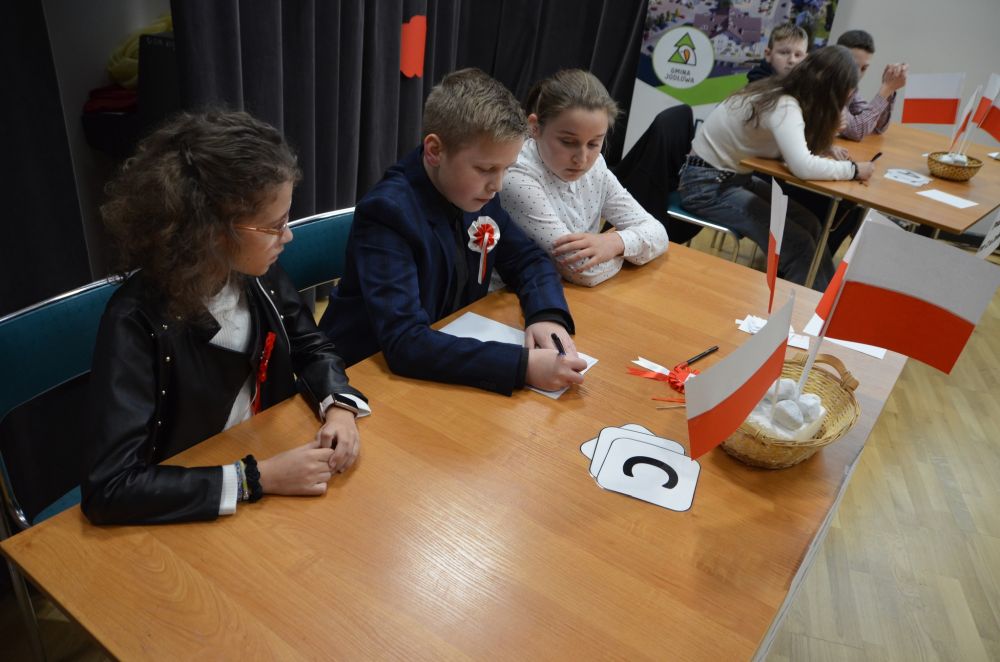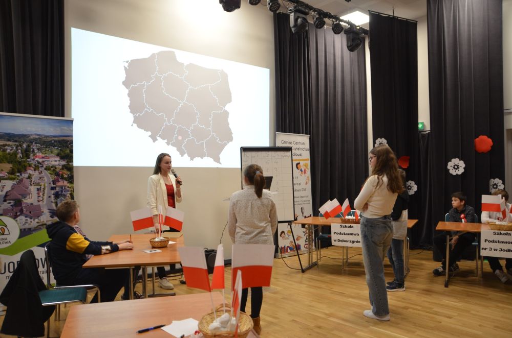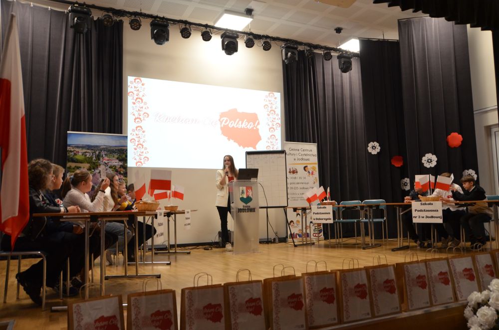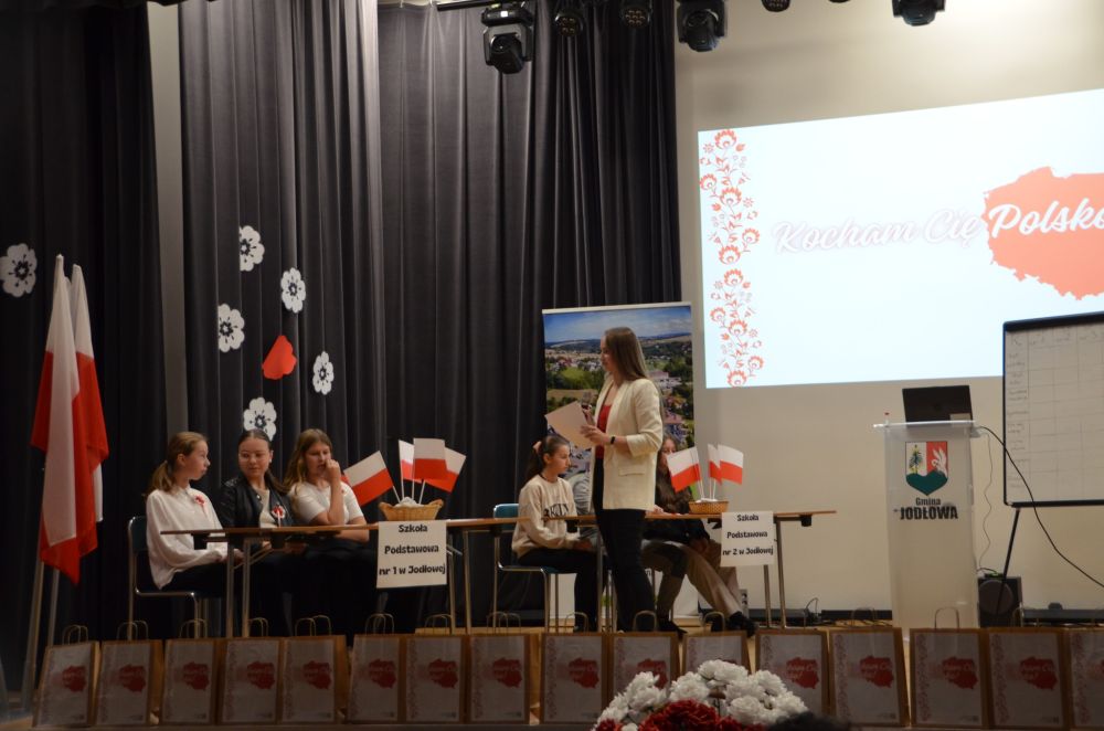 5 listopada na sali widowiskowej przy Gminnym Centrum Kultury i Czytelnictwa w Jodłowej uczniowie naszej szkoły zmierzyli się w konkursie wiedzy patriotycznej w stylu popularnego teleturnieju telewizyjnego "Kocham Cię Polsko!" z okazji zbliżającego się Święta Niepodległości. W 8 konkurencjach zawodnicy byli sprawdzani ze znajomości: historii Polski i historii lokalnej, przyrody, geografii, kultury oraz wiedzy ogólnej. Teleturniej odbywał się w 2 kategoriach wiekowych: