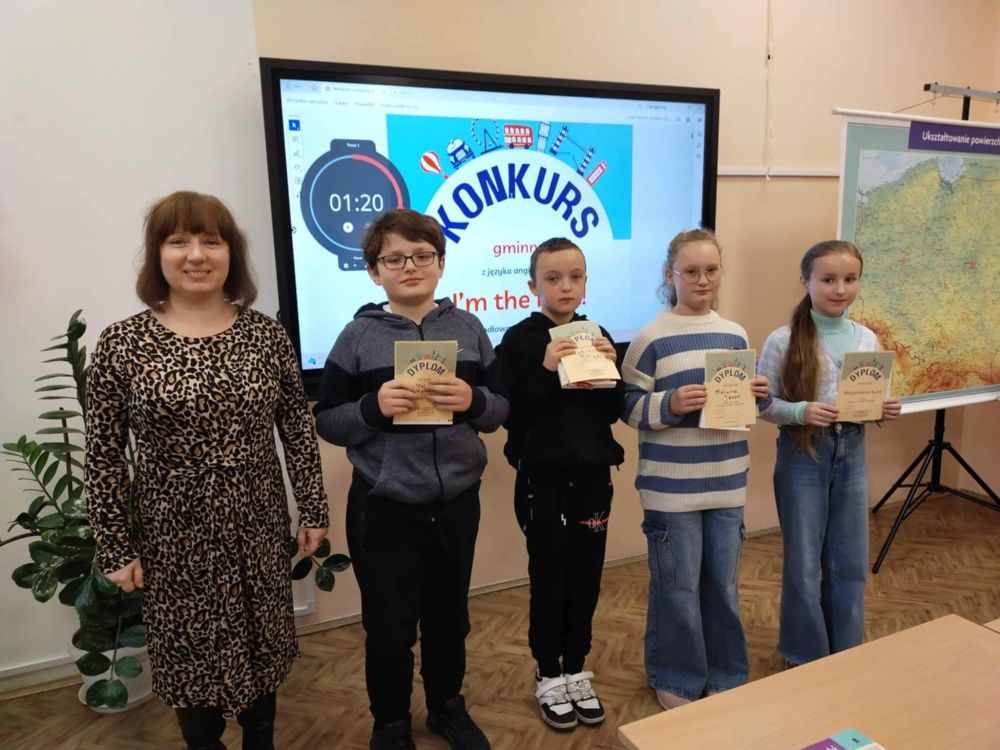 Gminny Konkurs z języka angielskiego „I’ m the best” Opublikowano: 20 listopad 2024 Z radością informujemy, że uczniowie Szkoły Podstawowej Nr 1 w Jodłowej zdobyli dwa miejsca na podium w Gminnym Konkursie z języka angielskiego "I’m the best". I miejsce Fabian Mosiądz (5b) III miejsce Stanisław Łyczak (4a) Gratulujemy!!!