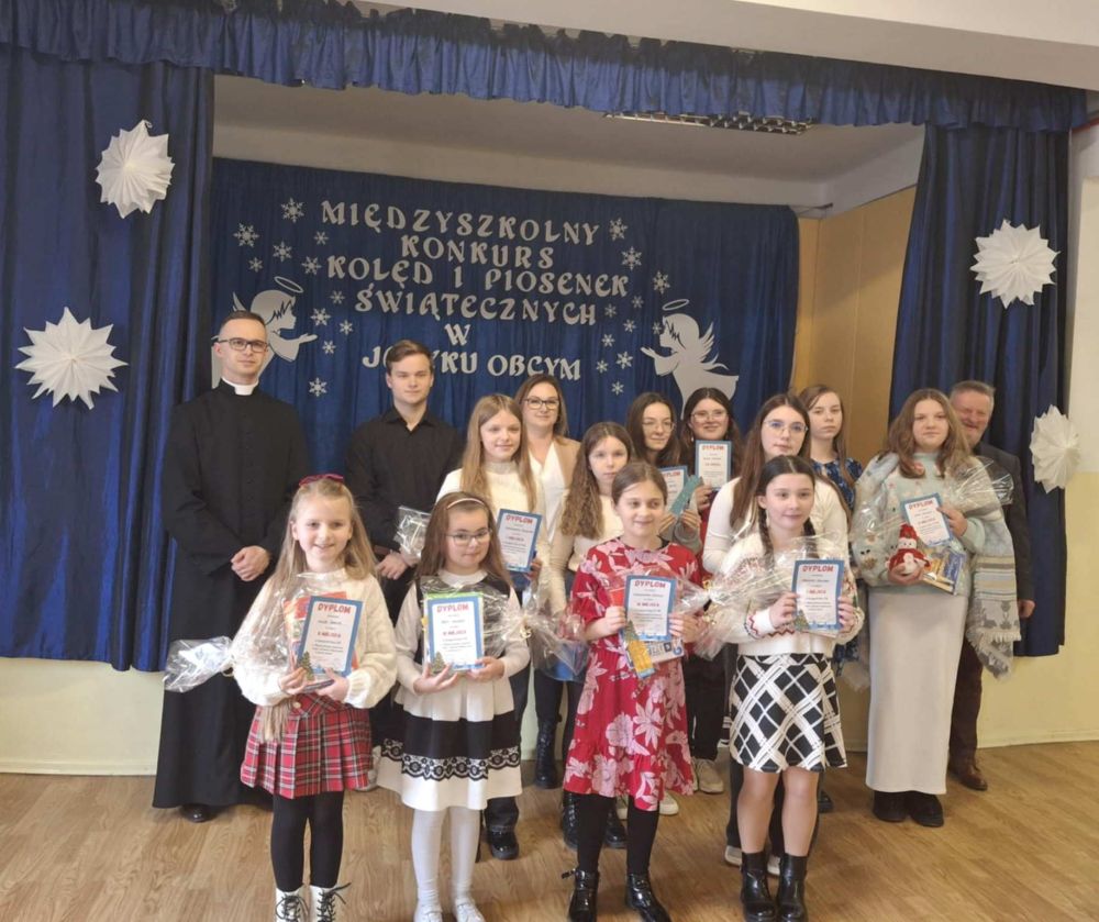 Dziś odbył się Międzyszkolny Konkurs Kolęd i Piosenek Świątecznych w Języku Obcym. Naszą szkołę reprezentowały w Dęborzynie Maya Czapla oraz Dominika Jędrzejczyk, które zdobyły ex aequo drugie miejsce. Dominika zaśpiewała kolędę "Mary did you know" a Maya zaorezentowała piosenkę "Snowmam". Serdecznie gratulujemy sukcesu i życzymy kolejnych udanych występów.