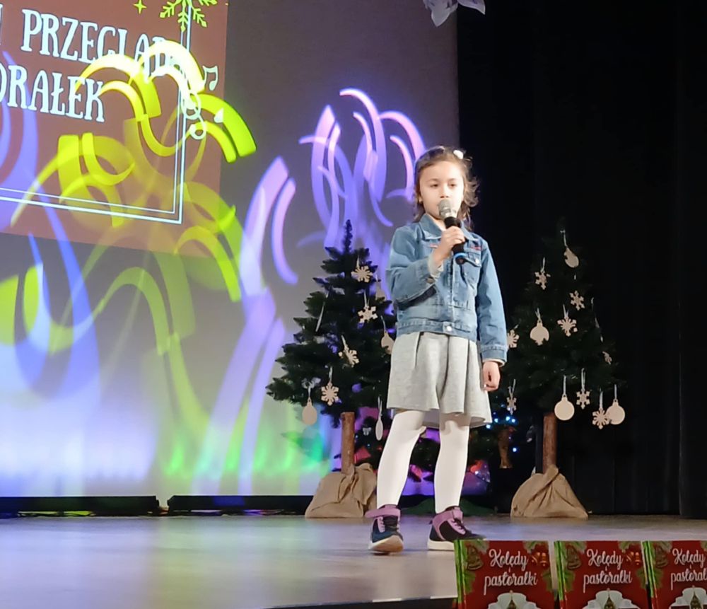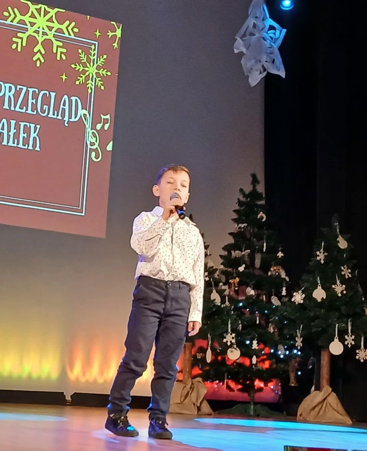 Kategoria II (kl. 1-4): I miejsce – Natalia Woźniak (kl.1). W wykonaniu Natalii usłyszeliśmy nastrojową świąteczną piosenkę pt. „Aniołek maleńki jak wróbelek”. Wyróżnienie uzyskał Patryk Furman (kl.1), który na konkursie zaprezentował się z tradycyjną kolędą „Wśród nocnej ciszy”.