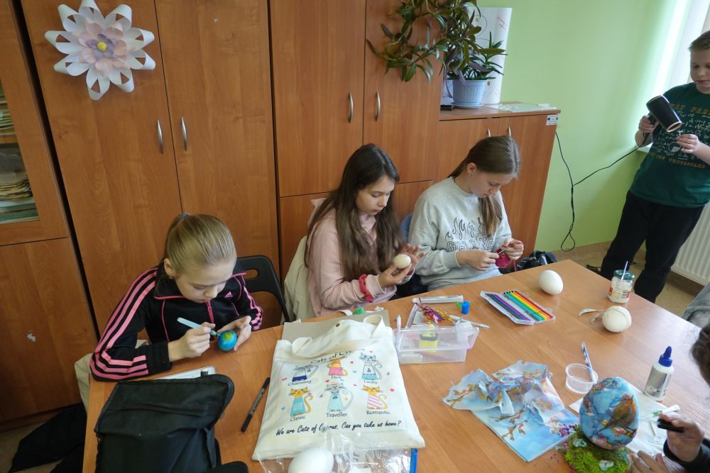 W konkursie pisanek zorganizowanym przez Gminne Centrum Kultury i Czytelnictwa wzięło udział sześcioro uczniów naszej szkoły wyłonionych w eliminacjach szkolnych. W dniu 11 kwietnia młodzi artyści wykonywali pisanki z własnych materiałów w siedzibie organizatora. Na uznanie konkursowego Jury zasłużyli: