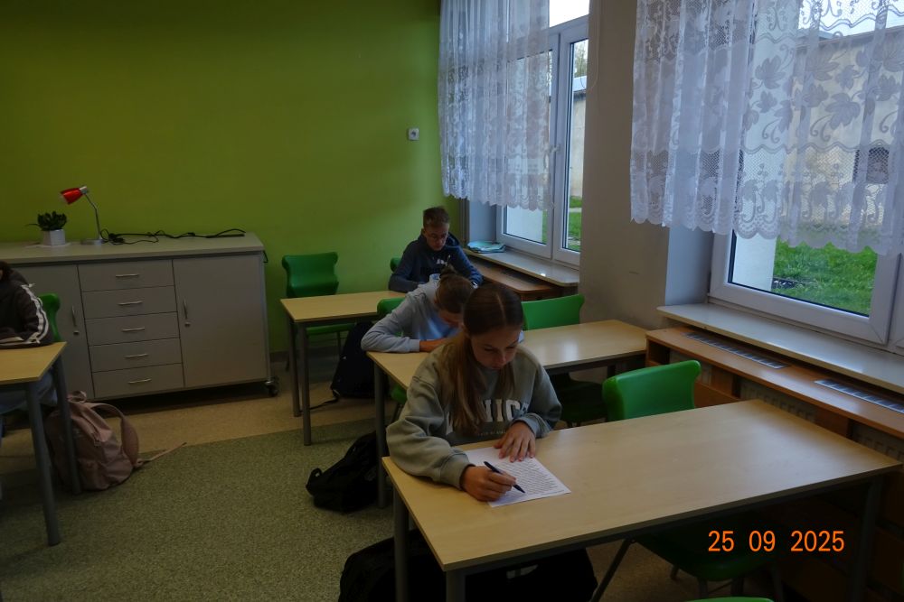 Dyktando z języka niemieckiego- Dzień Języków Obcych Opublikowano: 30 wrzesień 2025 Z okazji Dnia Języków Obcych uczniowie klasy 8 wzięli udział w szkolnym dyktandzie z języka niemieckiego. I miejsce zajęła Gabriela Warzecha, II miejsca zajęła Lena Sztogrin a III miejsce Marta Łącka.Gratulujemy!