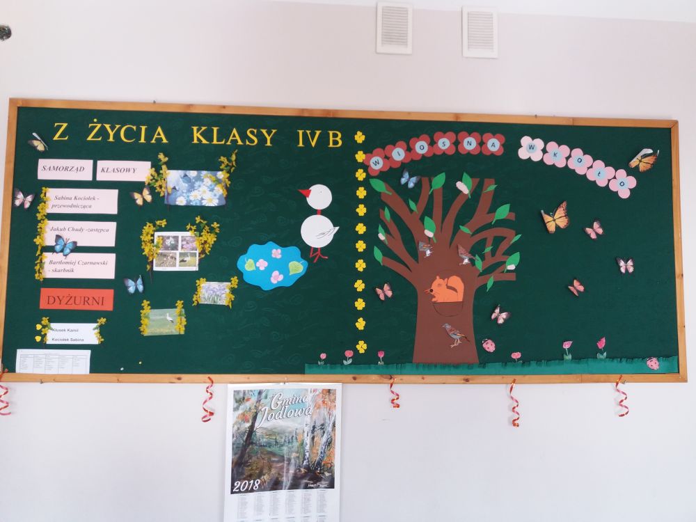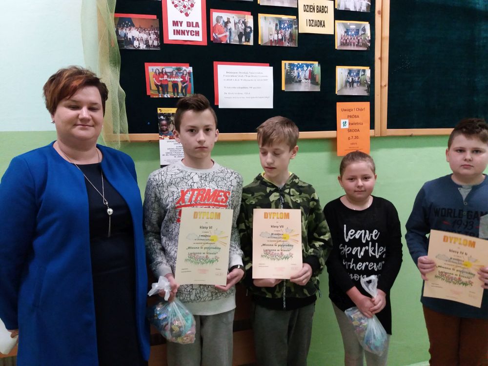 W kwietniu rozstrzygnięto szkolny konkurs na wystrój sal lekcyjnych w kl. IV-VII o tematyce wiosennej. Zadaniem uczniów było przygotować wystrój klasy. Uczniowie wykonali gazetki i ozdobili sale. Wyniki konkursu są następujące: