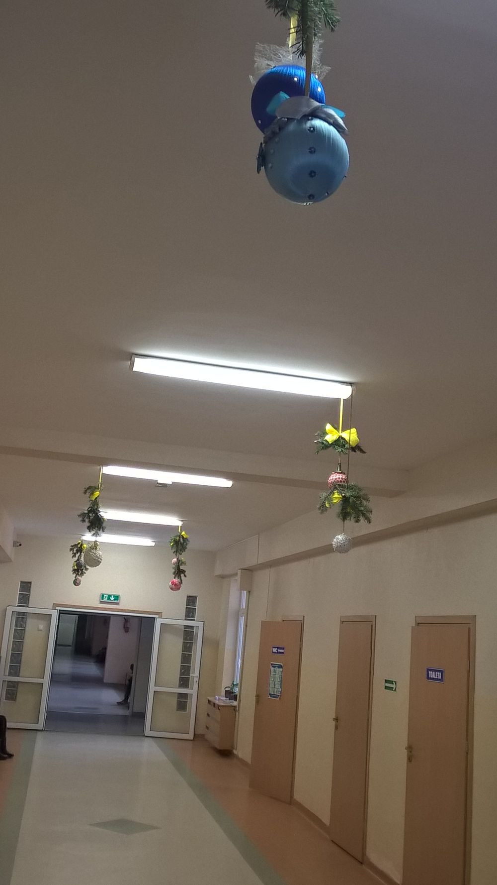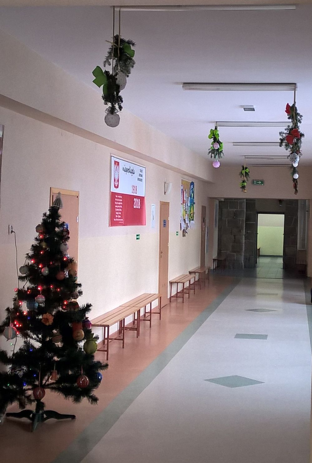 Ozdoby wykonane na konkurs w tym roku oraz latach poprzednich posłużyły do dekoracji szkoły i choinki.