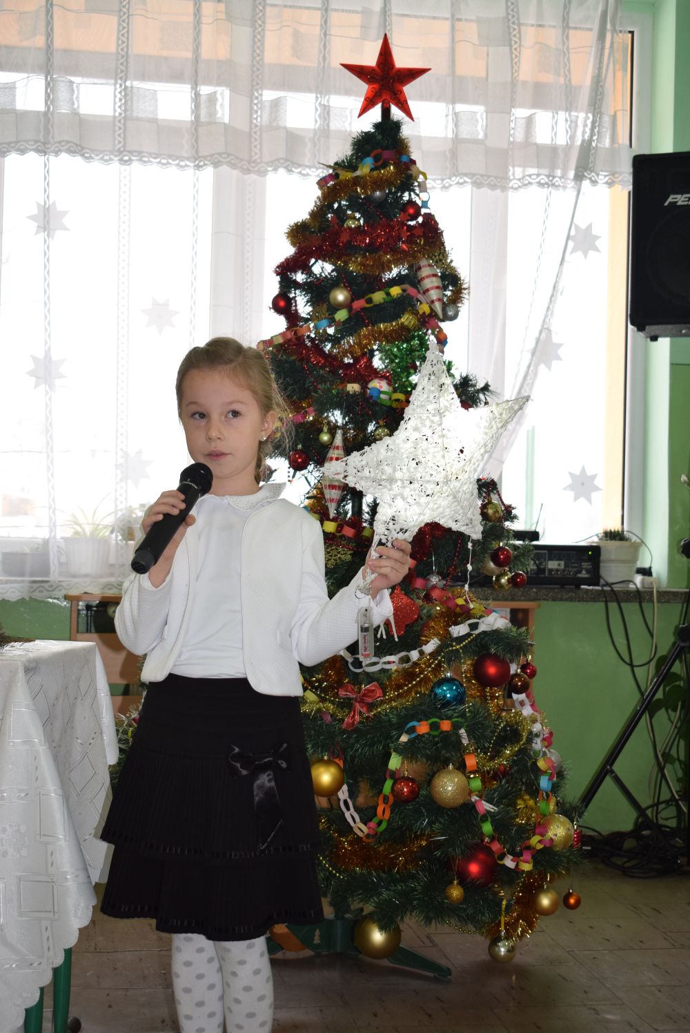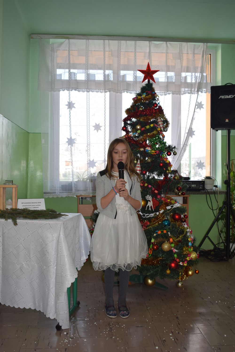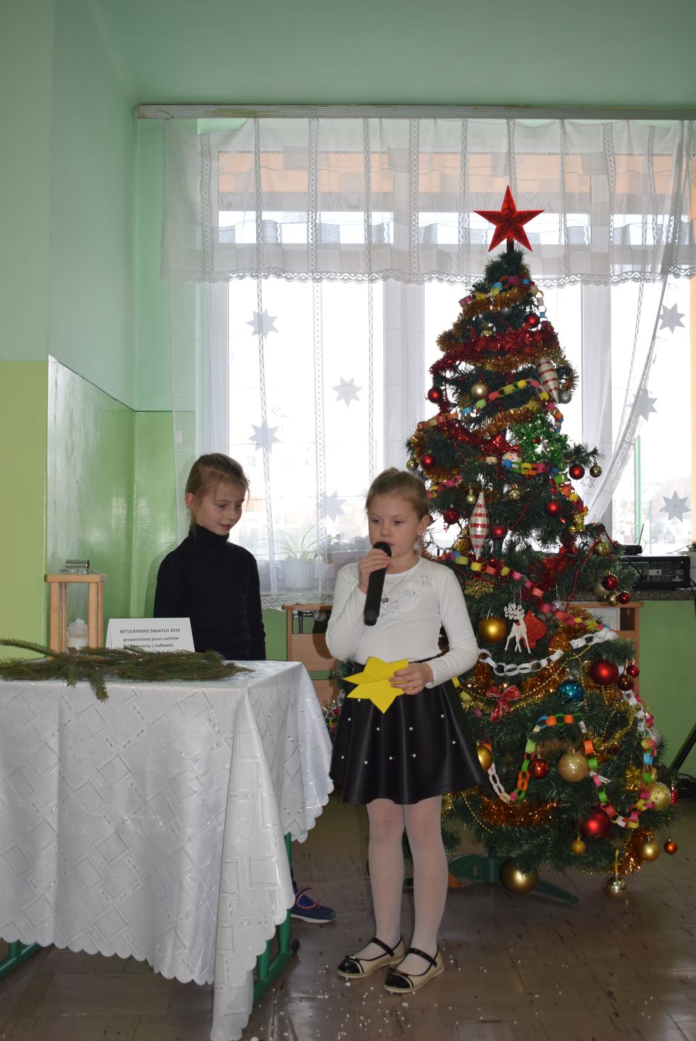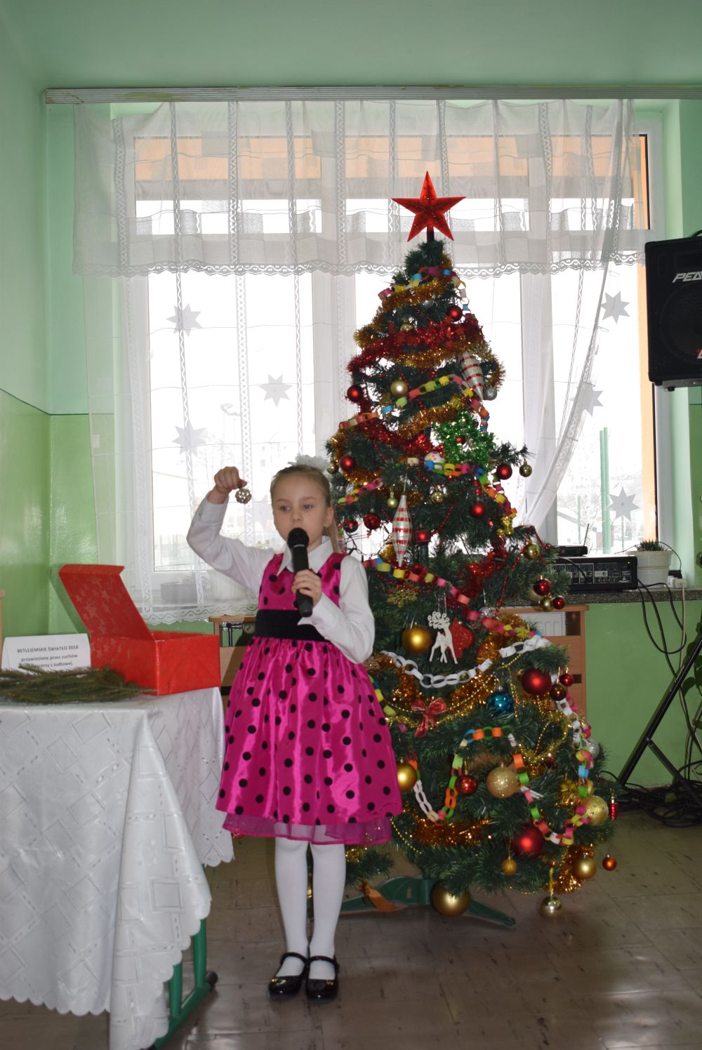 W recytacji wzięło udział 24 uczniów z klas I-III. Mali aktorzy w pięknych strojach i dobranych rekwizytach prezentowali swoje umiejętności recytatorskie przed publicznością szkolną. W ciepłym, serdecznym i świątecznym nastroju, na tle błyszczącej choinki nie zabrakło wzruszeń i oklasków.