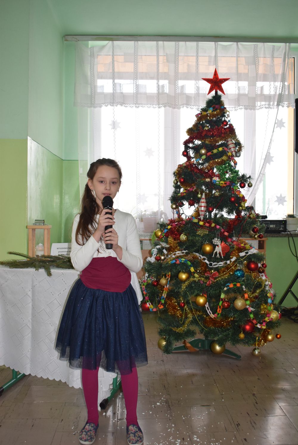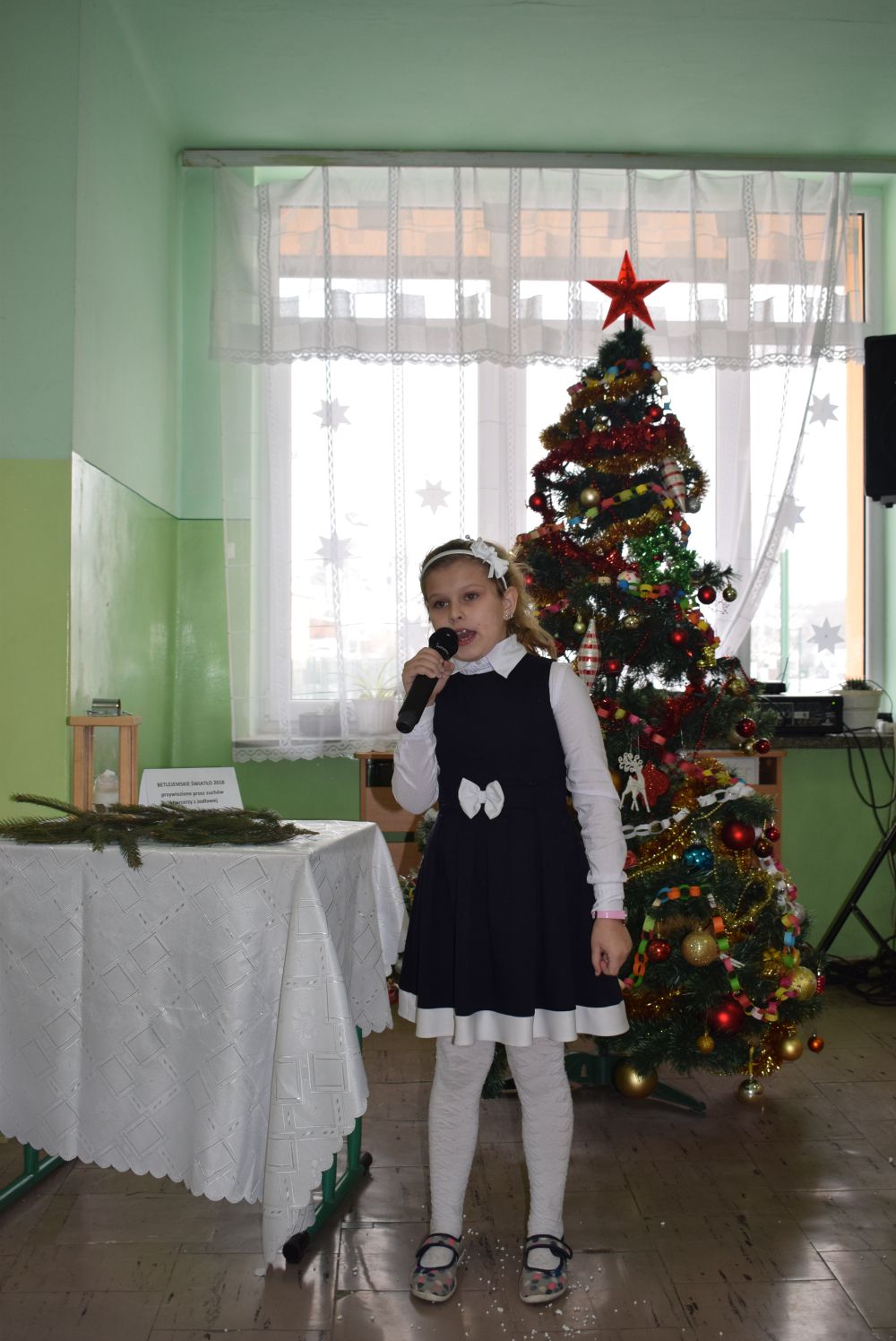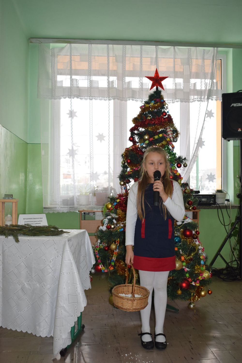 W recytacji wzięło udział 24 uczniów z klas I-III. Mali aktorzy w pięknych strojach i dobranych rekwizytach prezentowali swoje umiejętności recytatorskie przed publicznością szkolną. W ciepłym, serdecznym i świątecznym nastroju, na tle błyszczącej choinki nie zabrakło wzruszeń i oklasków.