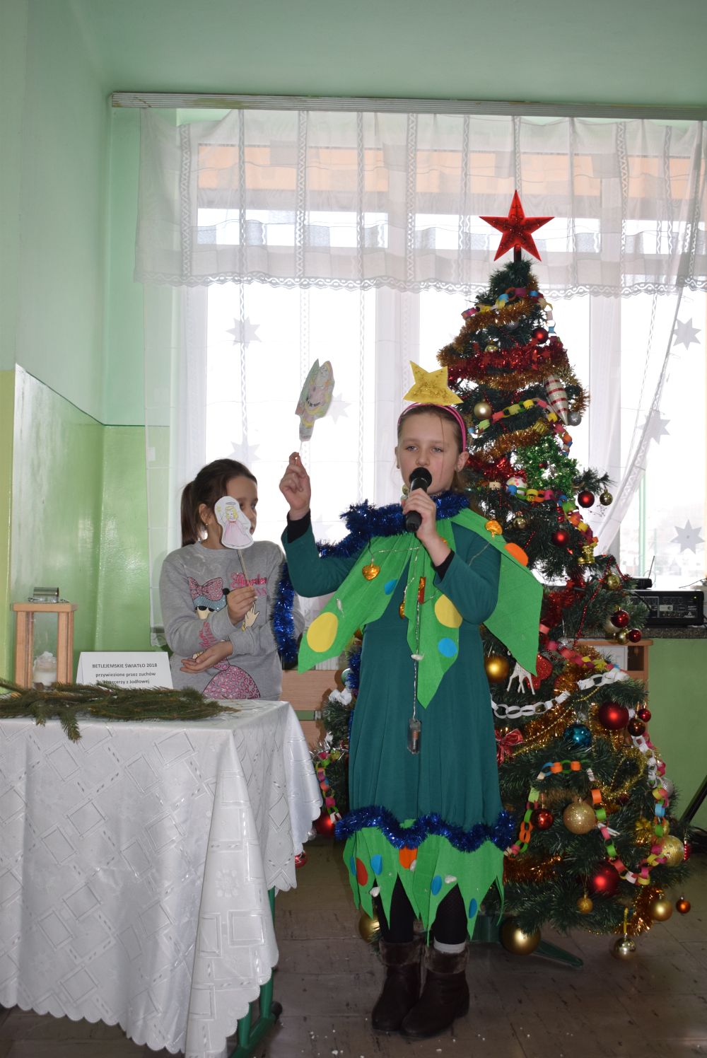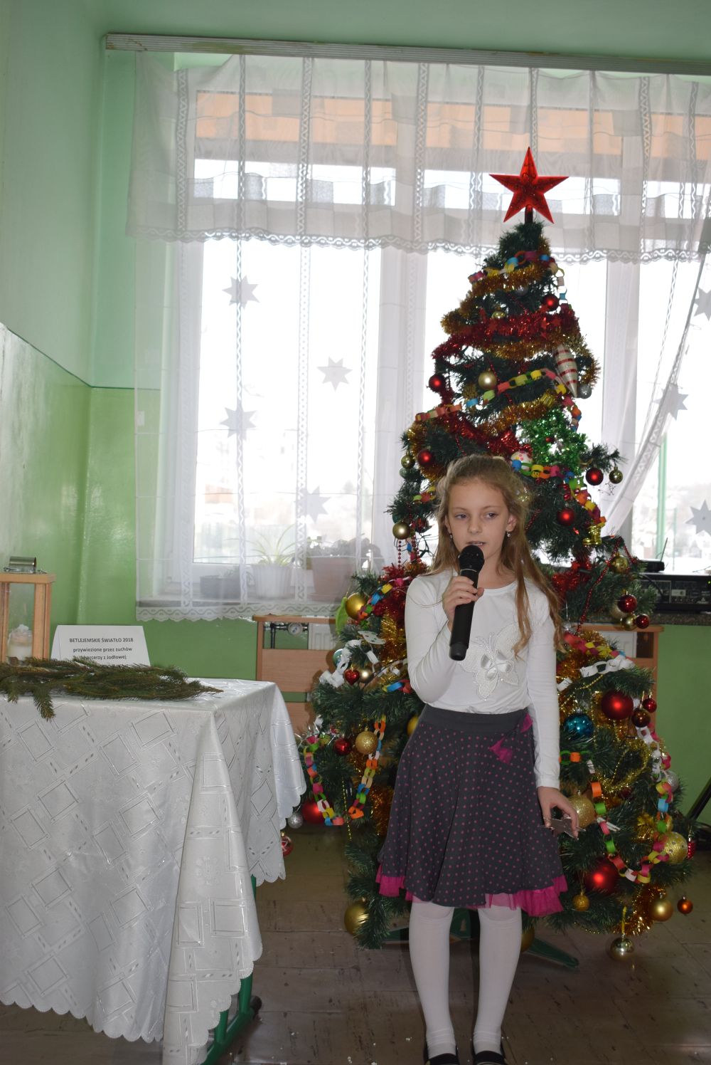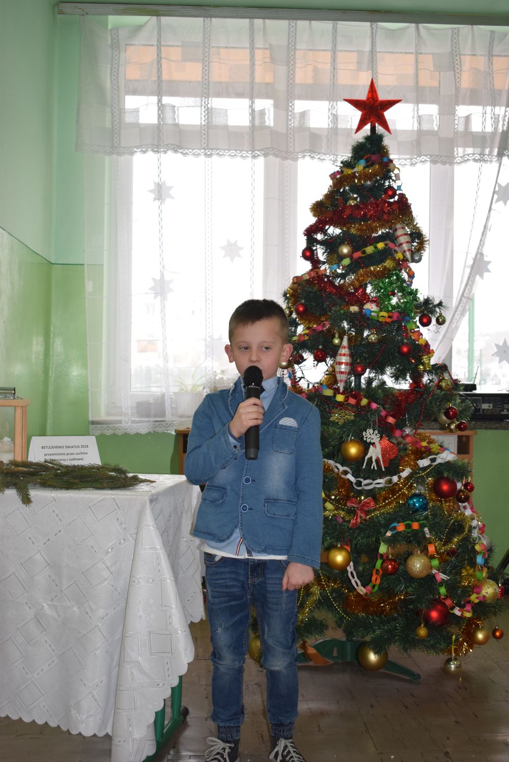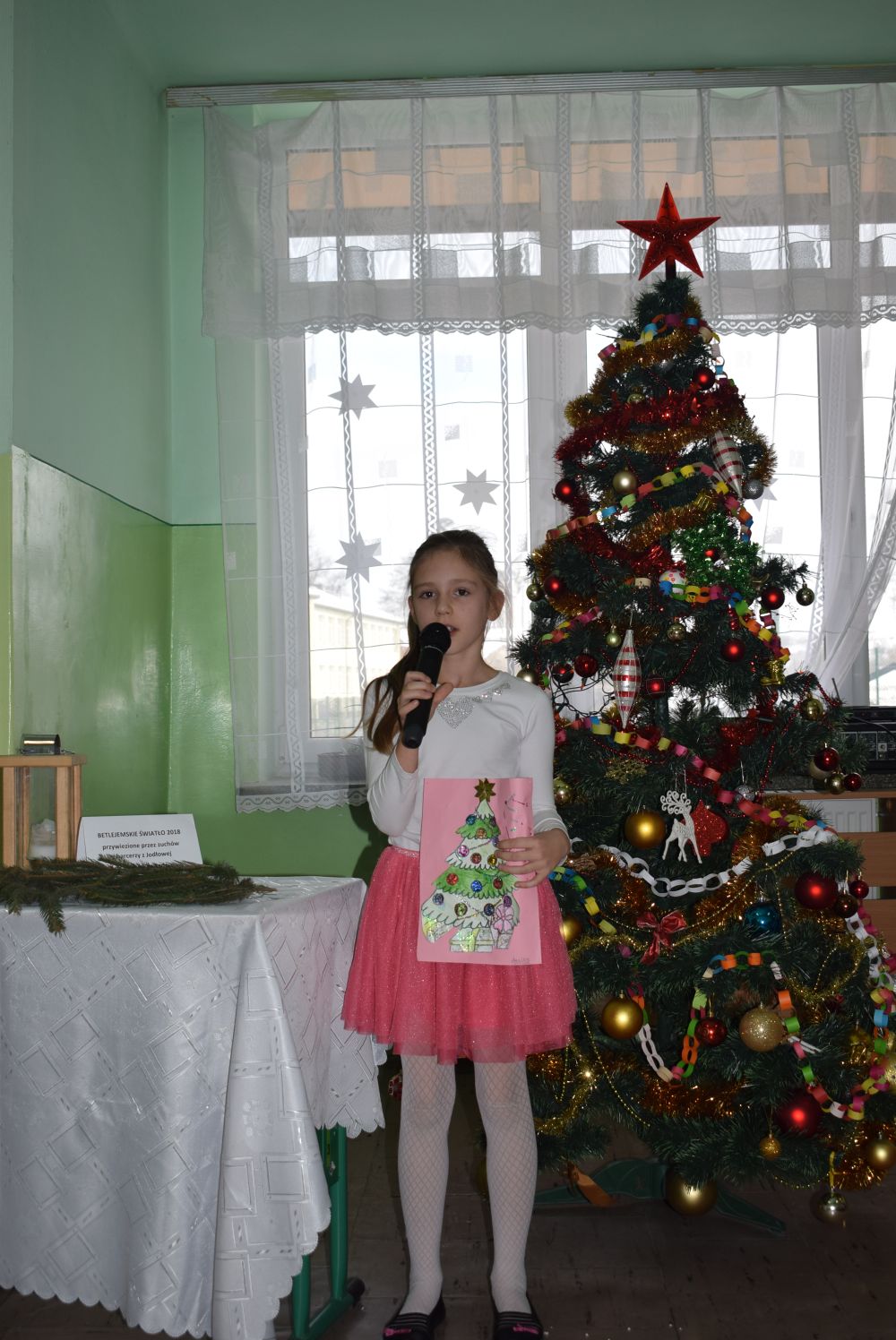 W recytacji wzięło udział 24 uczniów z klas I-III. Mali aktorzy w pięknych strojach i dobranych rekwizytach prezentowali swoje umiejętności recytatorskie przed publicznością szkolną. W ciepłym, serdecznym i świątecznym nastroju, na tle błyszczącej choinki nie zabrakło wzruszeń i oklasków.