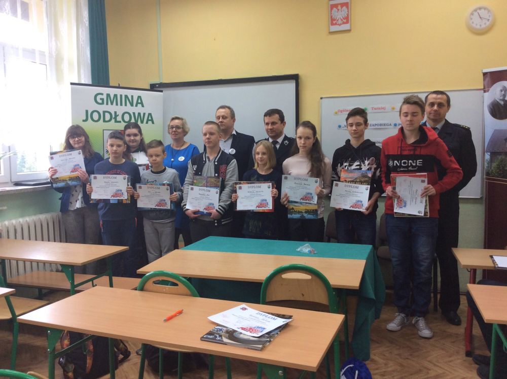 22 marca 2019 r. odbyły się eliminacje gminne z Ogólnopolskiego Turnieju Wiedzy Pożarniczej „Młodzież Zapobiega Pożarom”. Eliminacje zostały przeprowadzone w Szkole Podstawowej Nr 3 im. Zbyszka Cyganiewicza w Jodłowej przy współpracy Komendy Powiatowej Straży Pożarnej w Dębicy, Urzędu Gminy Jodłowa i Centrum Usług Wspólnych w Jodłowej. Z naszej szkoły 8 uczniów przystąpiło do turnieju.