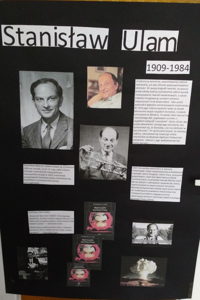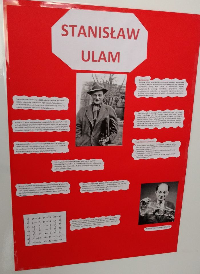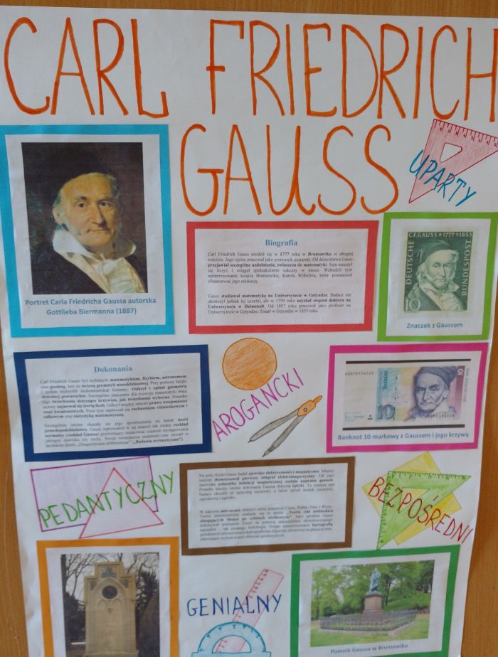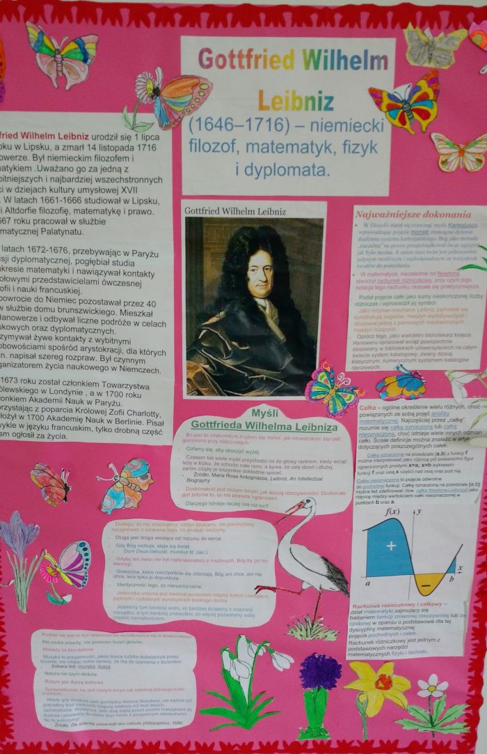 2. Plakat dotyczący sylwetki sławnego matematyka - Plakat umieszczony został na drzwiach klasy od strony korytarza - sylwetki matematyków zostały wylosowane przez przedstawicieli poszczególnych klas- 6.03.2019r.