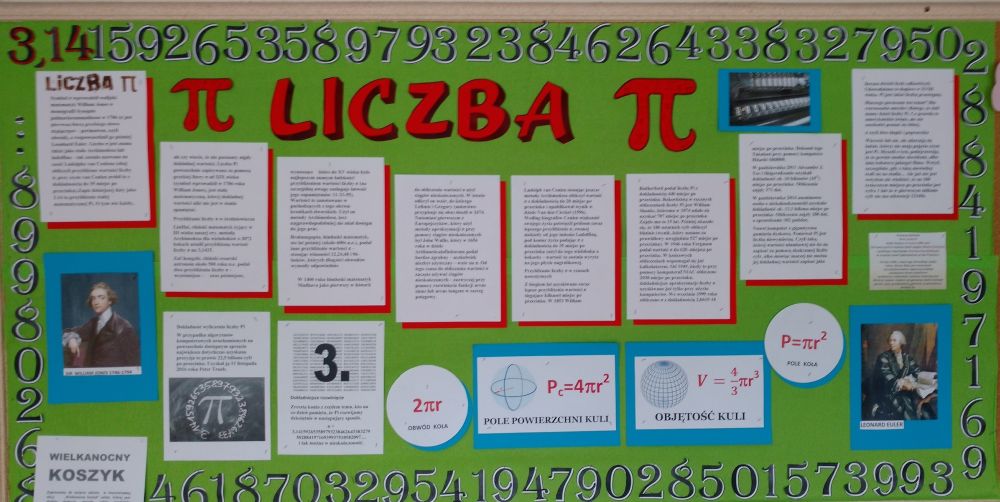 14 marca obchodziliśmy w naszej szkole Dzień Liczby Pi . Datę święta popularnego na całym świecie ustalono na podstawie najczęściej używanego przybliżenia tej liczby niewymiernej, które wynosi 3,14 (3. miesiąc i 14. dzień). Jako ciekawostkę można dodać, że tego dnia w roku 1879 urodził się Albert Einstein, wybitna postać świata nauki.