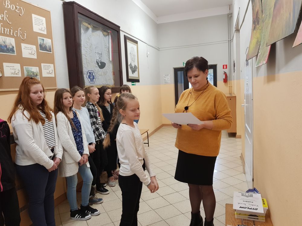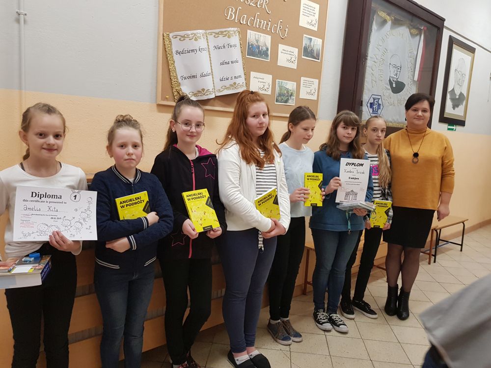 W listopadzie uczniowie naszej szkoły wzięli udział w gminnych konkursach języków obcych. Pierwszy z nich, pod hasłem "Sketchnoting for fun and learning", polegał na przygotowaniu notatki wizualnej w języku angielskim. Amelia Kita z kl. V b i Magdalena Jasica z kl. VIII wywalczyły miejsce I w swoich kategoriach wiekowych. Dziewczynki zwyciężyły w swoich kategoriach dzięki kreatywnemu i zabawnemu przedstawieniu reakcji w języku angielskim w formie notatki wizualnej. Pozostałe prace naszych uczniów również zwróciły uwagę jury i zostały przyznane wyróżnienia dla następujących uczniów: Martyna Jędrzejczyk, Wiktora Sieniawska, Natalia Nawracaj, Emilia Rynkar, Nicole Szpak, Mariola Szydłowska, Martyna Nawracaj, Karolina Fik.