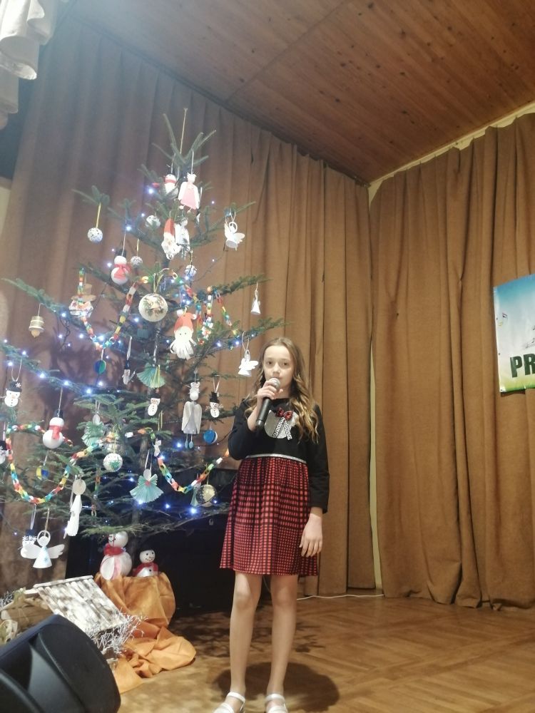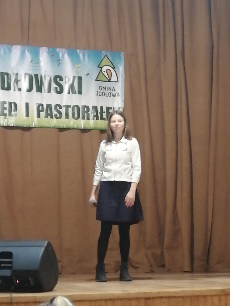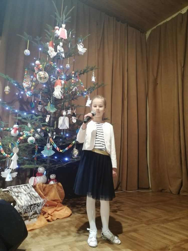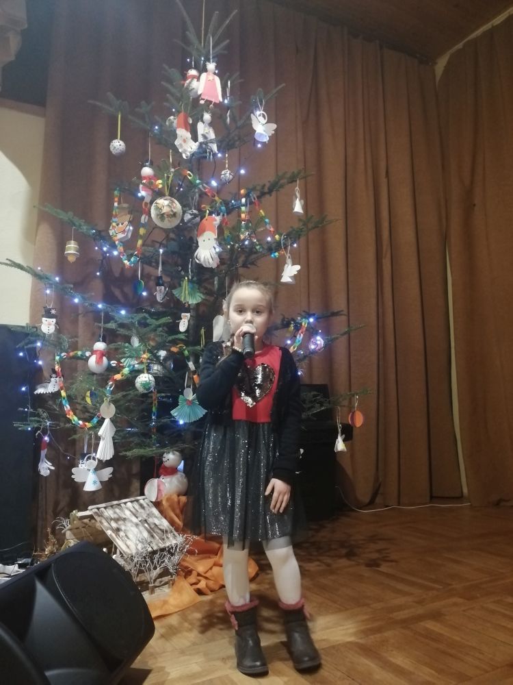 W kategorii klas 7-8 jurorzy przyznali I miejsce Agnieszce Batko z kl.7 za wykonanie Bożonarodzeniowej piosenki „Uciekali” z musicalu „Metro”.