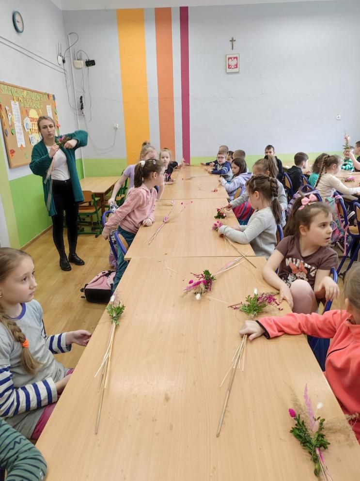 Z okazji Dnia Teatru uczniowie klasy IIa szyli pacynki wykorzystując zestaw igieł, pistolet do kleju na gorąco, klej do pistoletu. Na lekcji z wychowawcą uczniowie klasy 4a wykonywali dekoracje świąteczne na szkolne drzewko wielkanocne. Z kolei uczniowie klasy 5 prezentowali swoje zainteresowania poprzez wykonywanie zadań wykorzystując m.in. papier, klej, pistolet do kleju, taker, tekstylia. Pod koniec miesiąca odbyły się warsztaty palemek wielkanocnych. Na wszystkich zajęciach uczniowie wykazywali duże zainteresowanie i zaangażowanie.