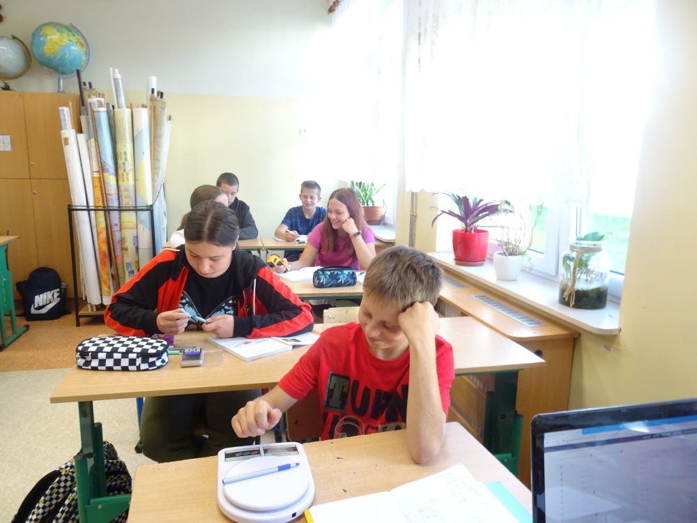Na lekcjach fizyki uczniowie klas siódmych uczyli się jak wykonywać doświadczenia, dokonywali pomiarów masy, długości i temperatury. Zwracali uwagę na zgodne z instrukcją użycie przyrządów, poprawne odczytywanie wyników i zapisywanie ich wraz z niepewnością pomiarową. Porównywali wyniki otrzymane za pomocą różnych przyrządów pomiarowych, np. linijki i suwmiarki, wagi kuchennej, laboratoryjnej i jubilerskiej.