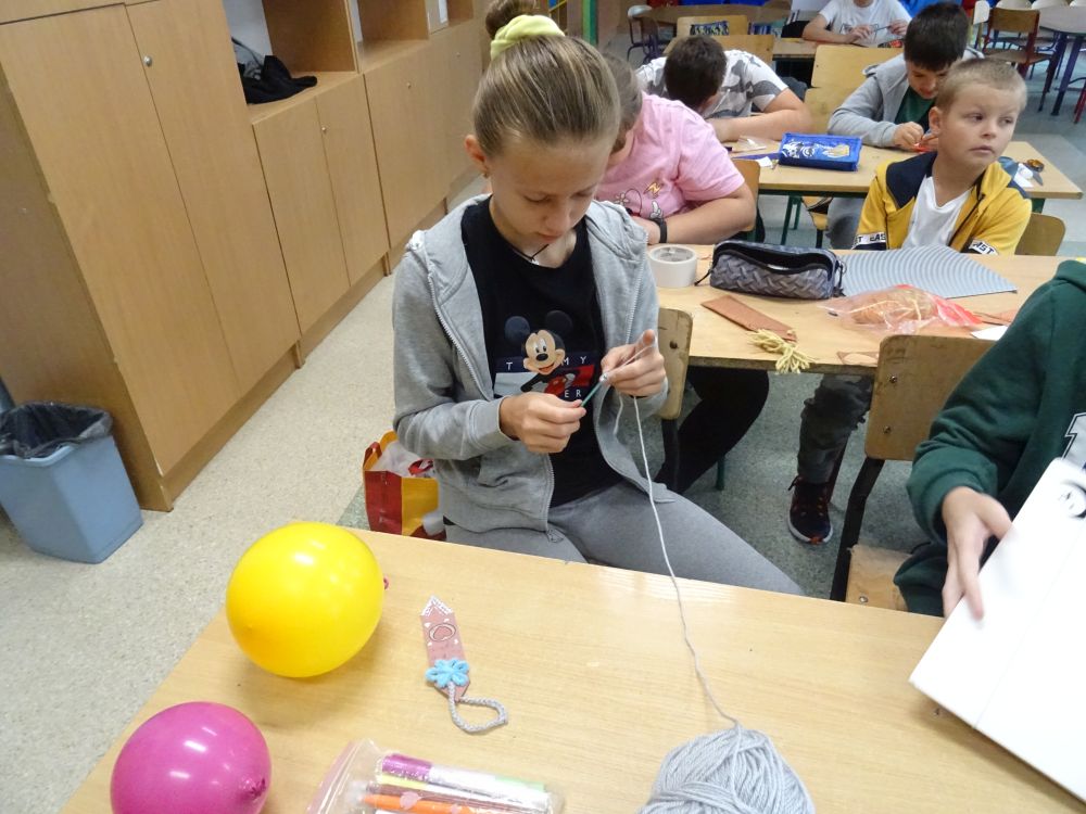 W trakcie zajęć warsztatowych uczniowie klas 4 - 6 zaprojektowali i wykonali odblaski z wykorzystaniem igieł i kleju pochodzącymi z projektu Laboratoria Przyszłości. Na lekcji techniki uczniowie klasy 5a wykonali zakładki do książek z wykorzystaniem igieł, nici, szydełek i kleju pochodzącymi z projektu Laboratoria Przyszłości. Zdjęcia wykonane zostały za pomocą aparatu fotograficznego również pochodzącego z tego projektu.