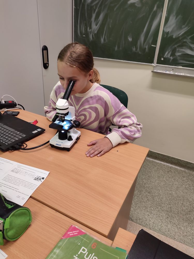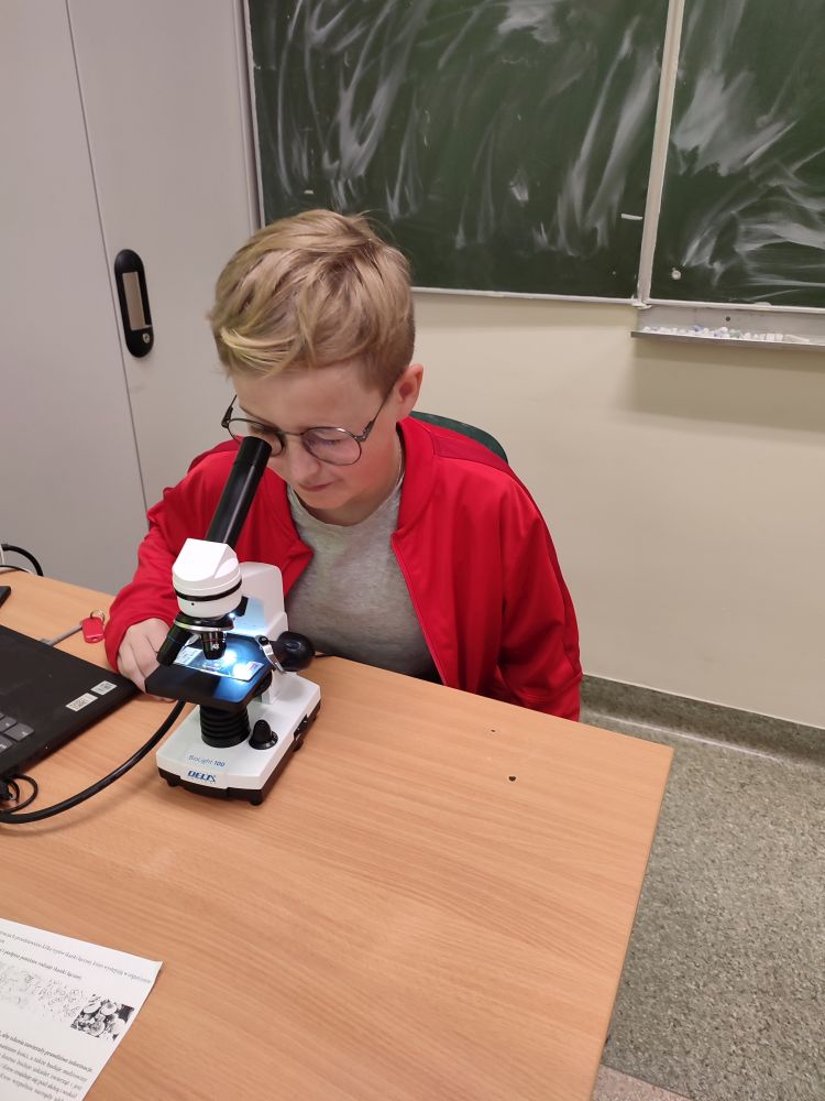 Na lekcjach biologii uczniowie klasy 6 przeprowadzali obserwacje mikroskopowe tkanek zwierzęcych korzystając m. in. z mikroskopów.