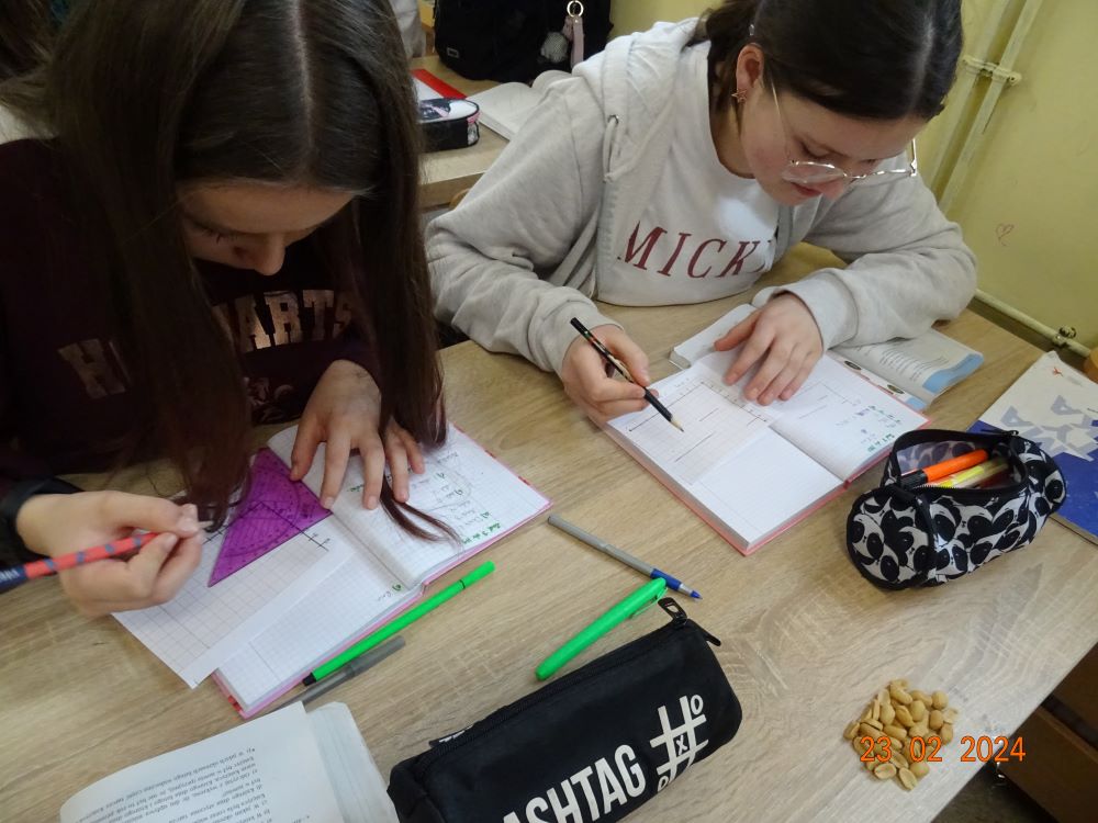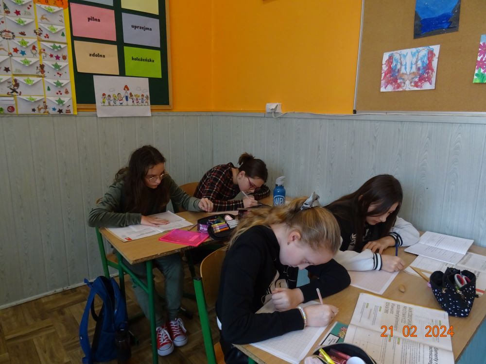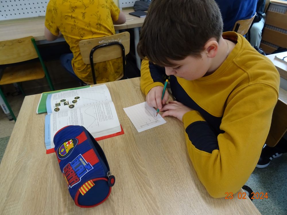 W czasie lekcji matematyki uczniowie klasy 8 wykonywali wykresy na papierze milimetrowym, pochodzącym z projektu Laboratoria Przyszłości. Podczas lekcji techniki uczniowie klasy 5b uczyli się pisania za pomocą pisma technicznego – w trakcie zajęć wykorzystano papier milimetrowy, pochodzący z projektu Laboratoria Przyszłości. Przebieg lekcji dokumentowano za pomocą aparatu fotograficznego, również pochodzącego z tego projektu.