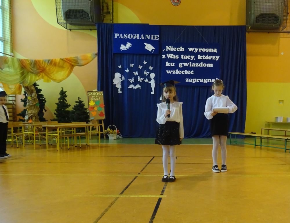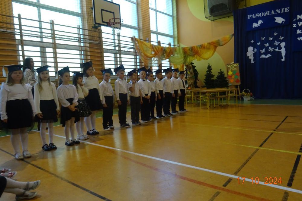 Pierwszoklasiści, ubrani w galowe stroje, zostali oficjalnie przyjęci do grona społeczności szkolnej. Ceremonia rozpoczęła się występami dzieci, które z entuzjazmem recytowały wiersze i śpiewały piosenki, przygotowane specjalnie na tę okazję. Kulminacyjnym momentem było pasowanie na ucznia, którego dokonała Pani Dyrektor, symbolicznie dotykając każde dziecko wielkim ołówkiem. Uczniowie złożyli również uroczyste przyrzeczenie, zobowiązując się do sumiennej nauki i szacunku dla innych. Po zakończeniu oficjalnej części, każdy z pierwszoklasistów otrzymał pamiątkowy dyplom oraz upominek. Było to pełne emocji i radości wydarzenie, które na długo pozostanie w pamięci uczestników.