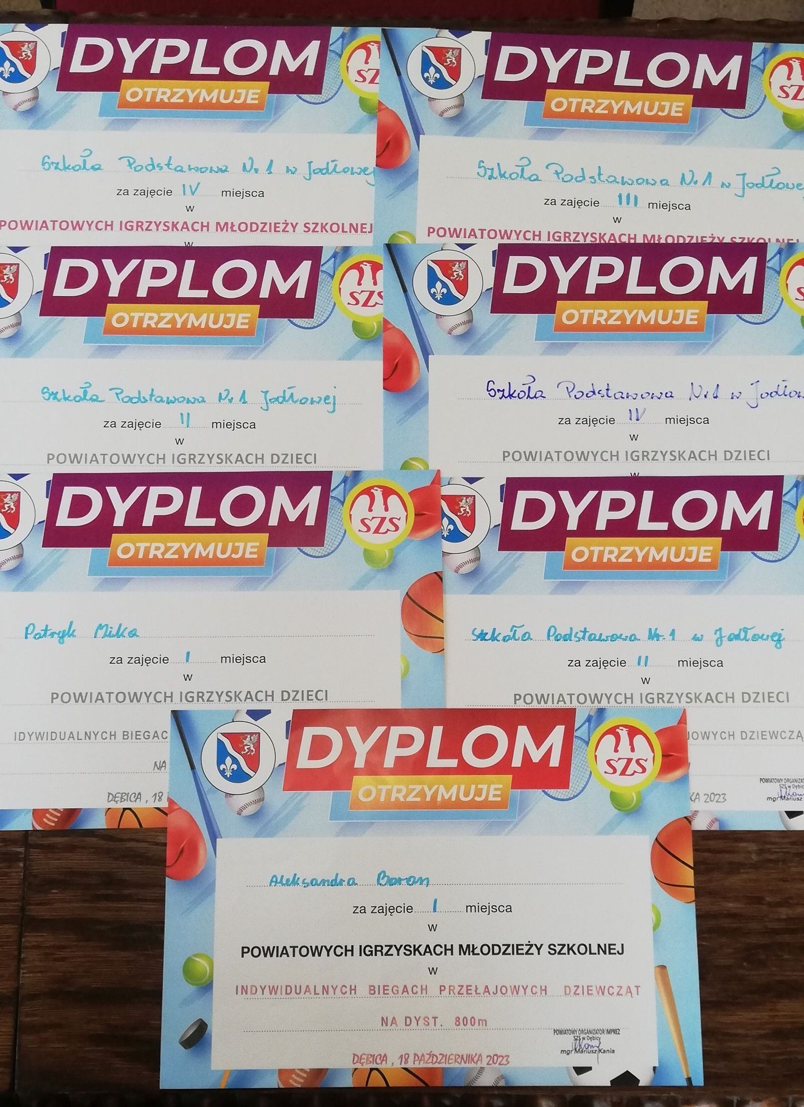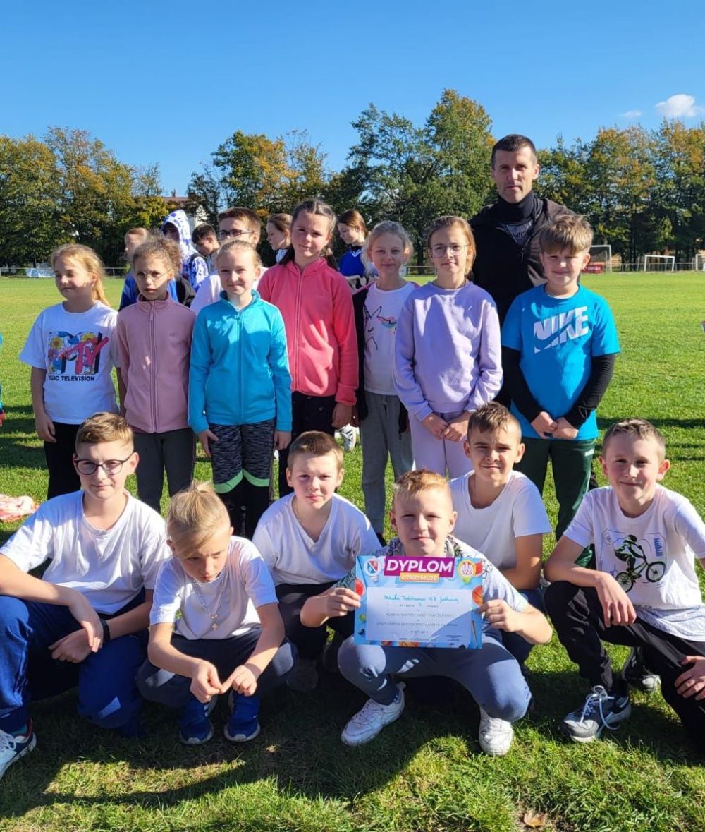 Bardzo dobrze zaprezentowali się uczniowie naszej szkoły w Powiatowych Igrzyskach Młodzieży Szkolnej w indywidualno-drużynowych biegach przełajowych. Pierwsze miejsca w swoich kategoriach wiekowych wywalczyli Aleksandra Baran i Patryk Mika. W klasyfikacji drużynowej chłopcy z klasy IV oraz dziewczyny z klas V i VI ukończyli ma II miejscu i wywalczyli awans do zawodów rejonowych. Na miejscu III ukończyły dziewczyny z klas VII - VIII.