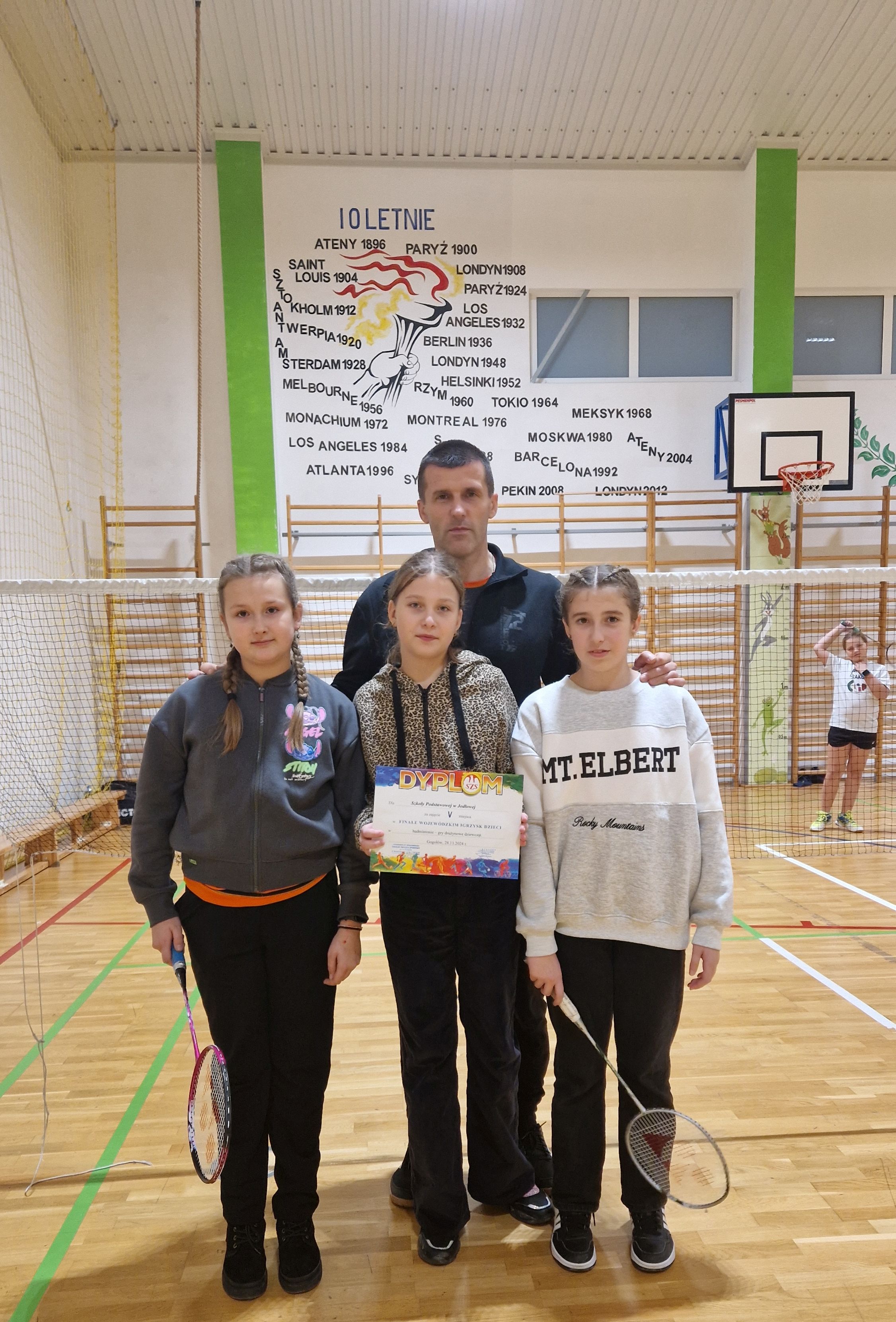 W II dniu Mistrzostw Województwa w Badmintonie, rozgrywanych w Szkole Podstawowej w Gogołowie rywalizowali najmłodsi adepci tej dyscypliny. O medale, dyplomy i puchary walczyło 12 zespoły wyłonione w 4 turniejach. Nasza szkoła w składzie Lena Pytlik, Nadia Górka i Ewelina Kaczka zajęła wysokie V miejsce. GRATULACJE!