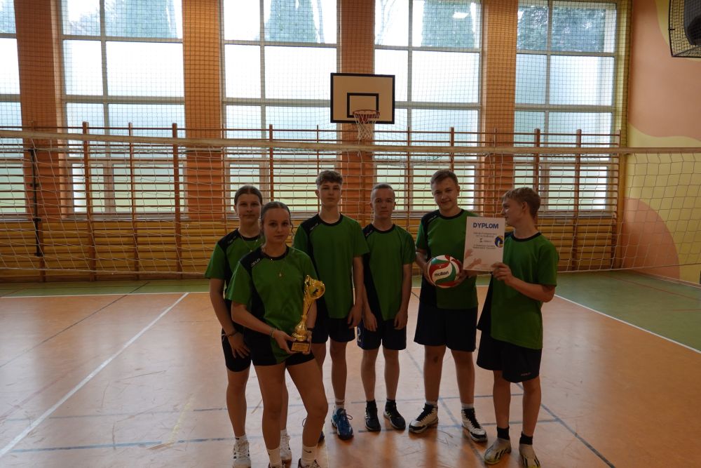 II Gminny Turniej Siatkarskich „Czwórek” Opublikowano: 26 kwiecień 2025 25 kwietnia 2025 r. w naszej szkole odbył się II Gminny Turniej Siatkarskich „Czwórek”. W zawodach wystartowało 5 drużyn ze wszystkich szkół podstawowych z terenu gminy. Uczniowie naszej szkoły wywalczyli I miejsce.Gratulacje!