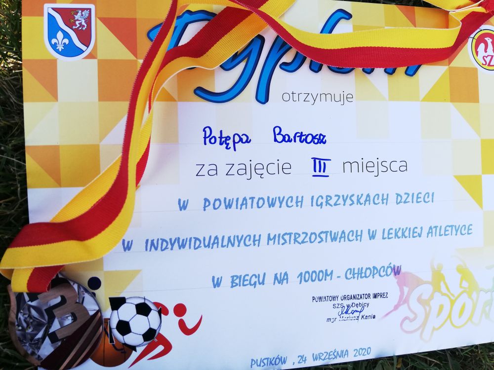 Czterema miejscami na podium zakończyły się powiatowe lekkoatletyczne zawody, które odbywały się 24 i 25 września w Pustkowiu. Pierwszego dnia w Igrzyskach Dzieci III miejsce zajął Bartosz Potępa, który startował w biegu na 1000 m. W biegu na 600 m wystąpiły Amelia Kita, Karolina Podraza i Aleksandra Baran, które zajęły odpowiednio 4, 5 i 6 miejsce. Jeszcze lepiej zaprezentowały się dzień później ich starsze koleżanki. W biegu na 300 m Angelika Baran była trzecia, natomiast w biegu na 600 metrów Weronika Baran wywalczyła I miejsce a Aleksandra Podraza II miejsce. W biegu tym uczestniczyła również Nicola Dudek, która zajęła siódme miejsce.