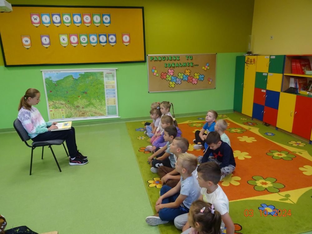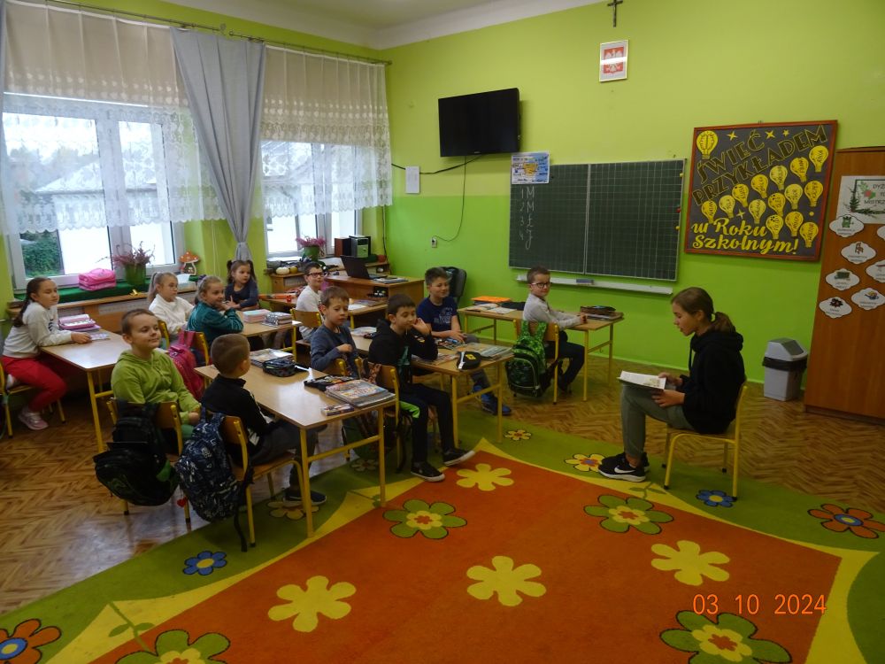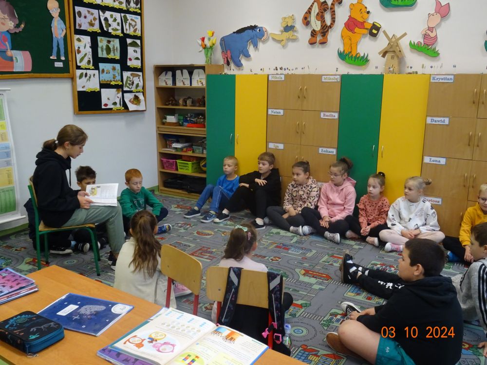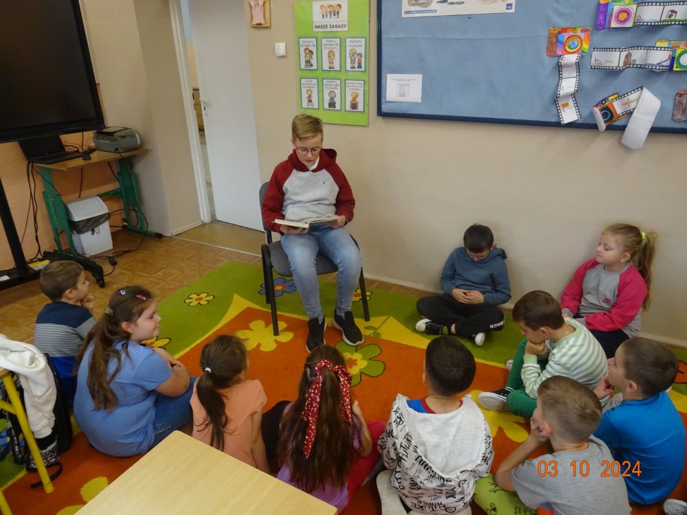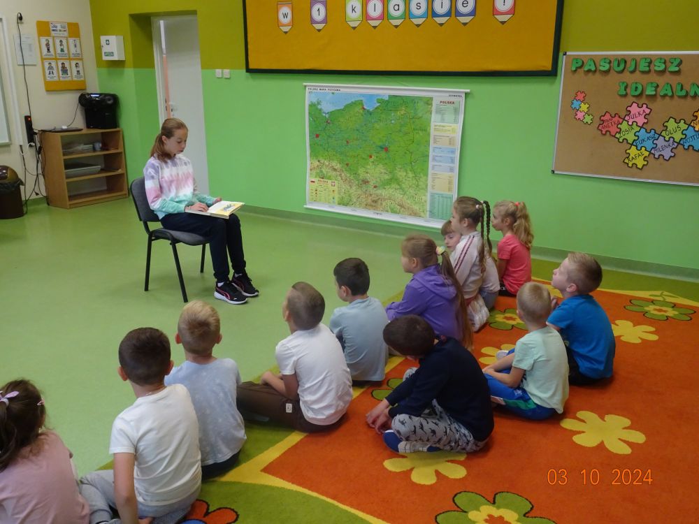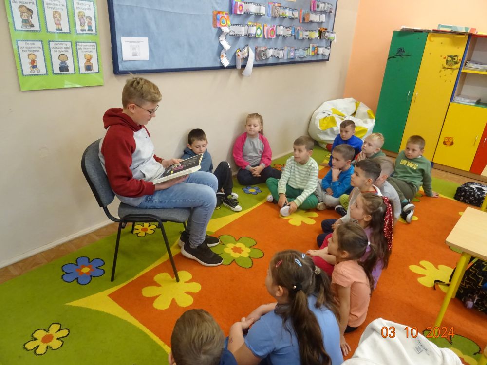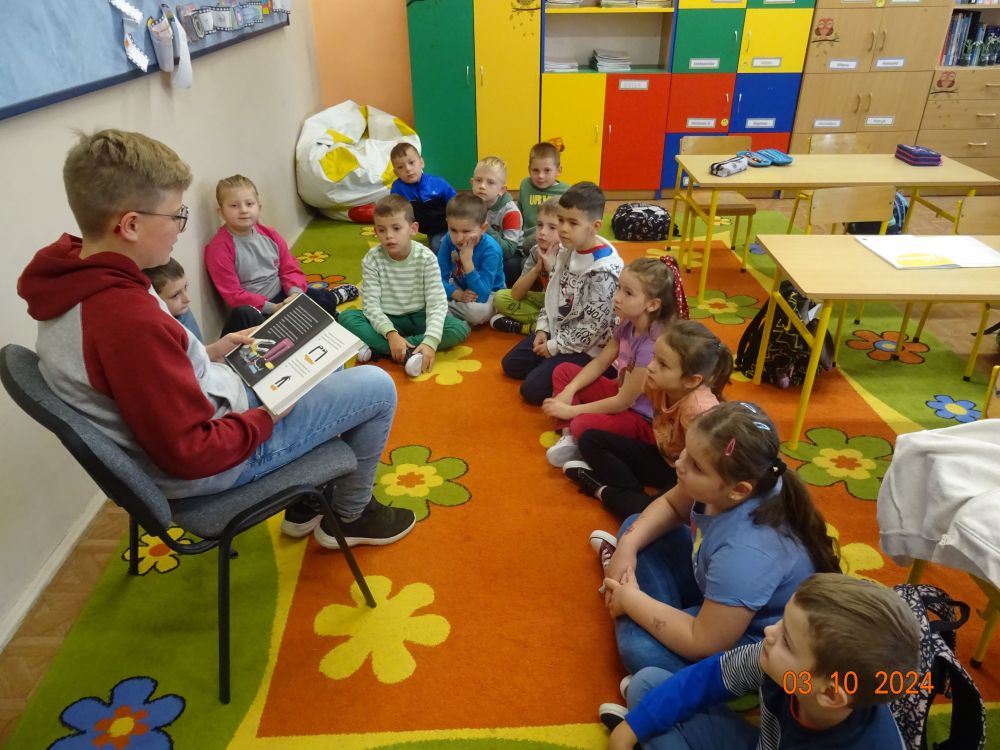 W ramach akcji starsi uczniowie naszej szkoły udali się z wizytą do młodszych klas (0-III) i zaprezentowali im fragmenty znanych książek dla dzieci. Wśród propozycji znalazły się między innymi: „Niesamowite przygody dziesięciu skarpetek” Justyny Bednarek oraz „Jak się masz Cukierku” Waldemara Cichonia. Dzień ten stał się dobrą okazją do promocji czytelnictwa wśród młodych.