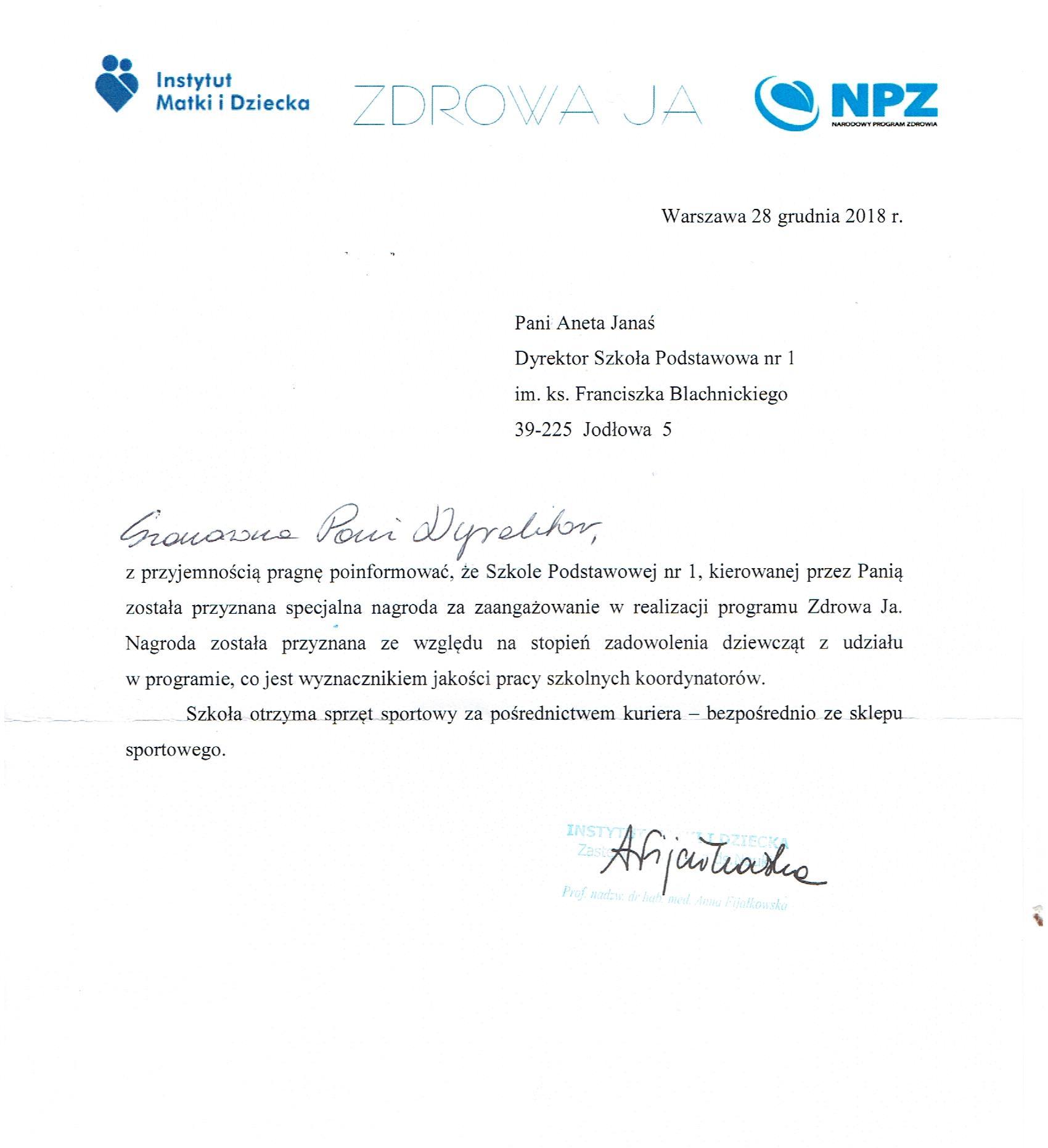 Zespół projektu „ZDROWA JA” szczególnie docenił 5 najbardziej zaangażowanych w jego realizację dziewcząt z naszej szkoły, które otrzymały karty podarunkowe o wartości 200 zł każda do sklepu sportowego.