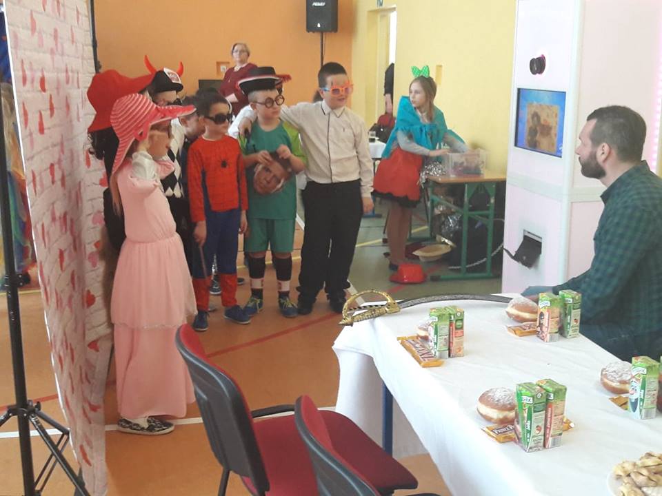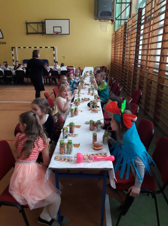 Na szkolnym balu karnawałowym znalazł się też czas na odpoczynek, by zregenerować siły i zjeść poczęstunek przygotowany przez Radę Rodziców.