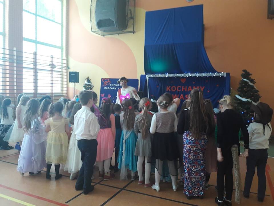 Zabawę prowadził wodzirej, który wymyślał różne zabawy i atrakcyjne konkursy, które dostarczały mnóstwa radości. Uczniowie zachwyceni byli muzyką, rekwizytami oraz samym prowadzącym. Wszyscy uczniowie bawili się znakomicie przy rytmach różnorodnej muzyki jak przystało na prawdziwy bal.