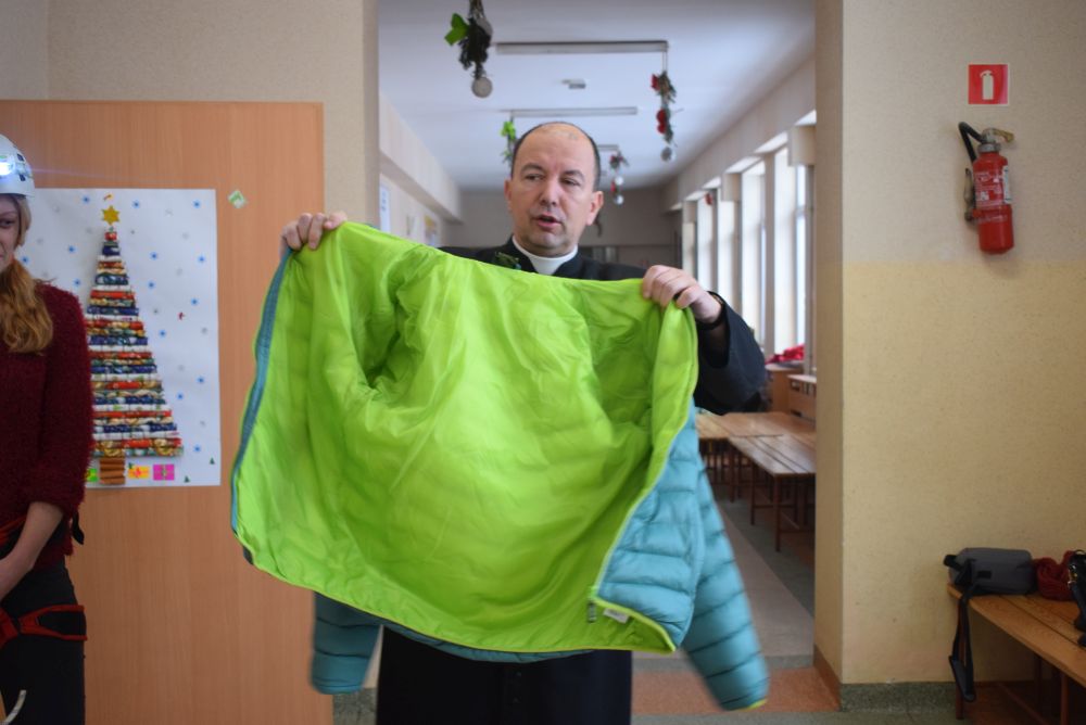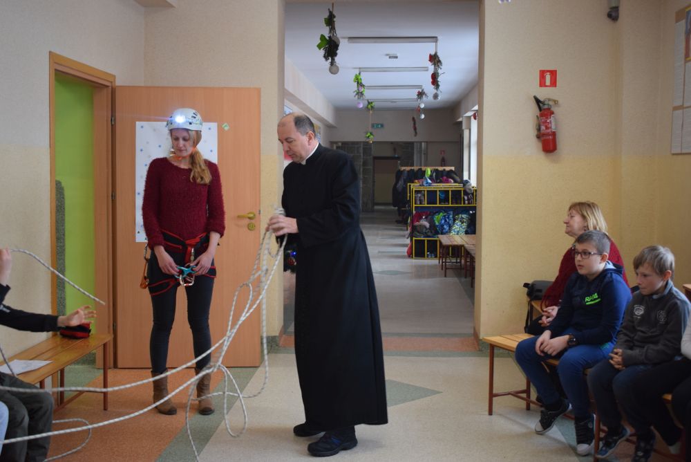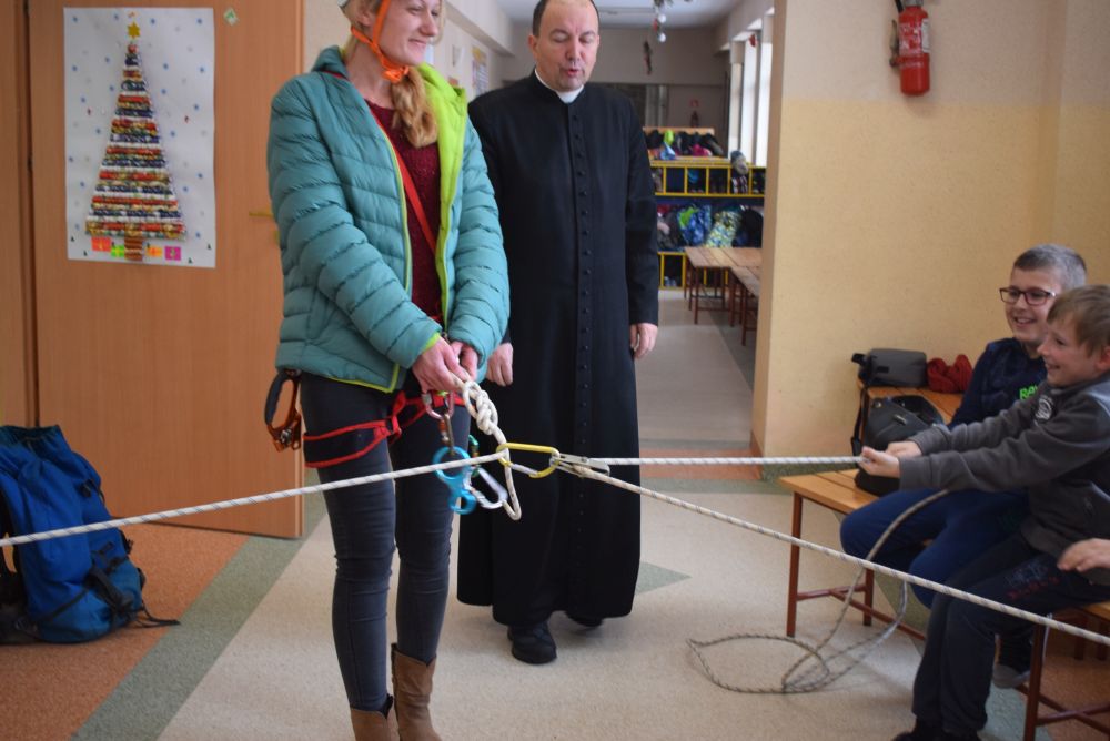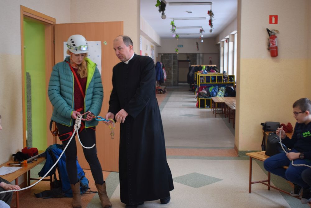 W piątek 25 stycznia uczniowie klas I- IV dzięki księdzu doktorowi Zenonowi Tomasiakowi poznali szczegóły związane z pracą alpinisty. Ksiądz w ciekawy sposób przybliżył ideę wspinaczki, zademonstrował specjalistyczny sprzęt, przedstawił zagrożenia związane z odwiedzaniem różnych, szczególnie najwyższych zakątków świata. Pokaz dostarczył wielu emocji, a przede wszystkim był bardzo kształcącym doświadczeniem.