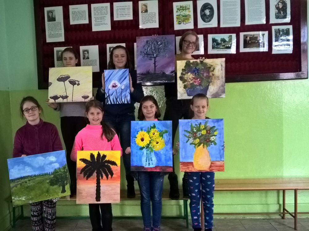W dniu 13 lutego br. grupa uczniów naszej szkoły brała udział w warsztatach malarskich. Uczestnicy zajęć tworzyli prace farbami akrylowymi na płótnie, używając różnych narzędzi. Uczniowie wyrazili chęć ponownego udziału w tego typu zajęciach pozalekcyjnych, więc chyba byli z nich zadowoleni. Niektórzy wrócili do domu i utworzyli kolejne prace.