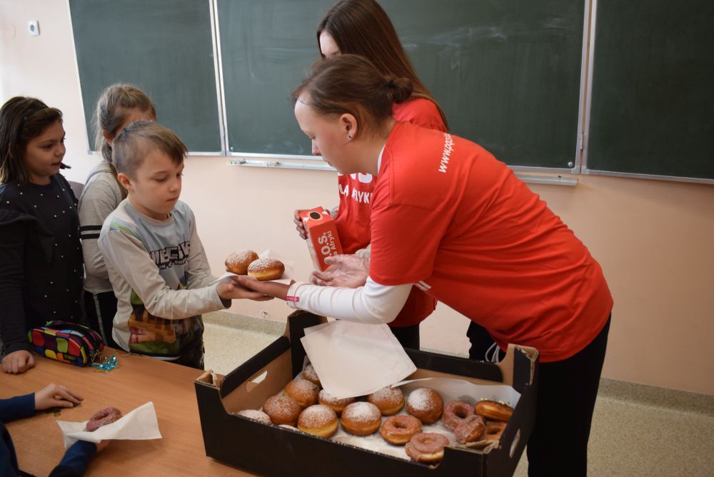Każdy uczestnik akcji miał okazję nie tylko zjeść pysznego pączka pieczonego w Jodłowej, ale także realnie pomóc mieszkańcom Afryki. Pamiętajmy, że dobro mnoży się przez pączkowanie.