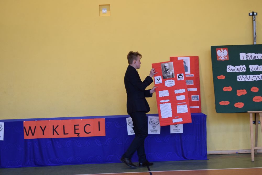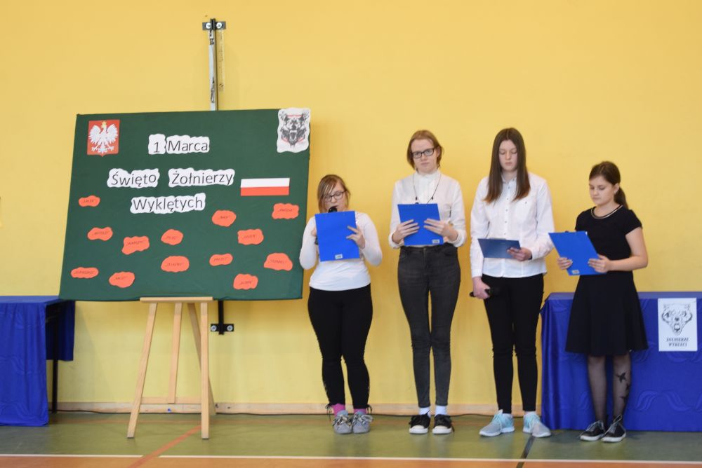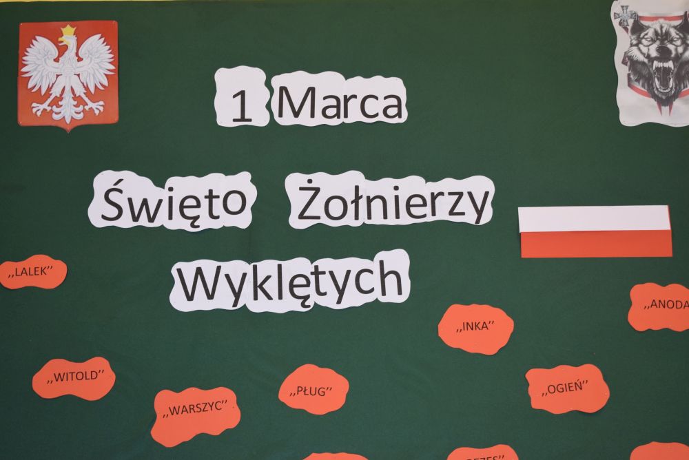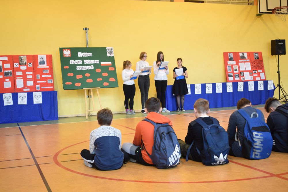1 marca uczniowie klasy VIII zaprezentowali na forum szkoły projekt edukacyjny poświęcony Żołnierzom Wyklętym. Projekt rozpoczęło wycie wilka. Wyjaśniono zebranym dlaczego wilk, skąd nazwa wyklęci oraz z jakiego powodu w komunistycznej Polsce nie pamiętano o tych żołnierzach. Przedstawiono 15 plansz edukacyjnych ukazujących zdjęcia i charakterystykę żołnierzy oraz gazetkę bazową z pseudonimami walczących. Ponadto odczytano krótką charakterystykę każdej postaci historycznej ze szczególnym uwzględnieniem walki z sowietyzacją Polski.