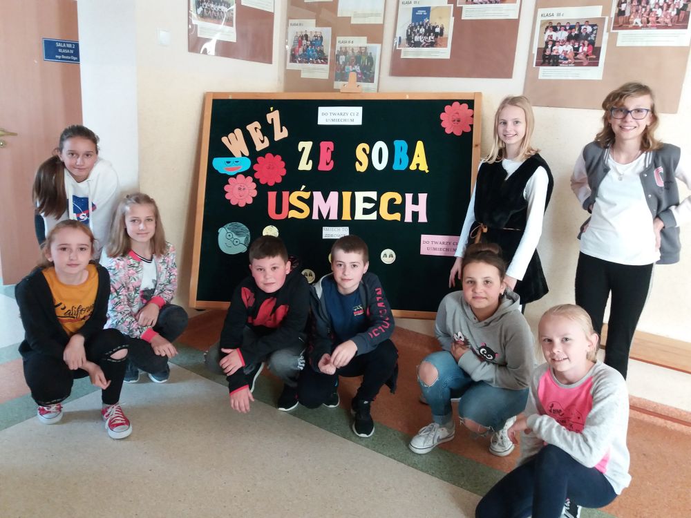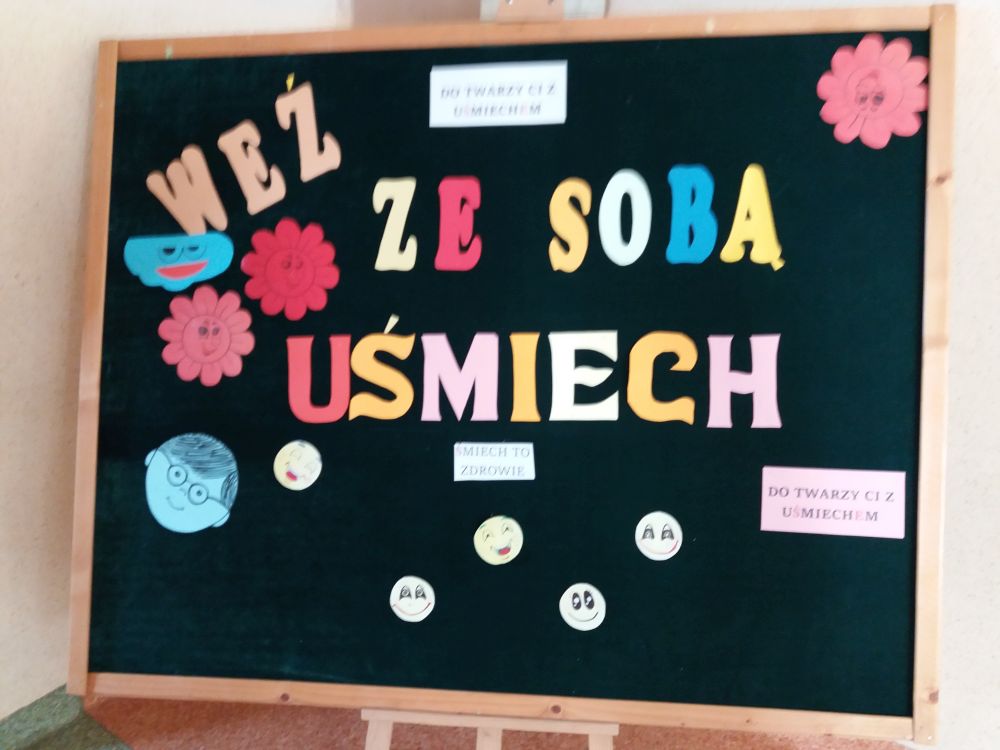 66fee866d66cf592b216ae9876dc115f5794Już po raz trzeci  obchodziliśmy w naszej szkole "Dzień Uśmiechu", którego pomysłodawcą był Harvey Ball, autor znany na cały świat symbolu uśmiechniętej buzi tzw. „Smiles face”. Symbol ten reprezentować ma dokładnie to, co na co dzień chcemy widzieć jak najczęściej u innych ludzi – bezinteresowny uśmiech i radość życia. Bo jak się okazuje, znane od wieków powiedzenie „śmiech to zdrowie” jest potwierdzone naukowo. Śmiech odstresowuje, wzmacnia układ odpornościowy, stymuluje wydzielanie endorfin – hormonów szczęścia. W tym dniu chcieliśmy sprawić radość innym i zachęcić do częstego uśmiechania się. Wykonana została gazetka pt. „Weź ze sobą Uśmiech”. Dlatego nauczyciele i każdy chętny uczeń otrzymał uśmiechniętą buźkę, która miała uchronić ucznia przed złą oceną lub minusem. Dzień był radosny i oby jak najczęściej uśmiech gościł na twarzach naszych uczniów i nauczycieli.