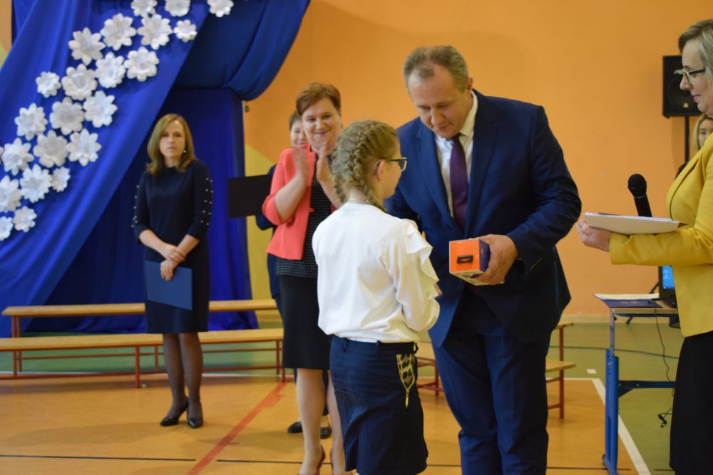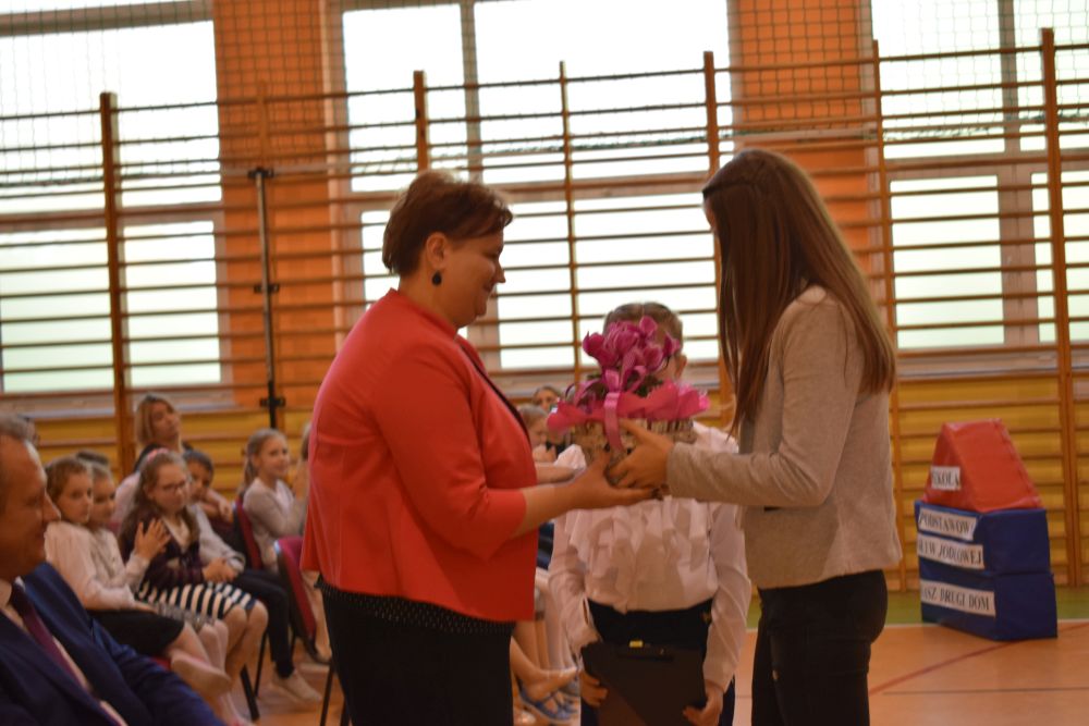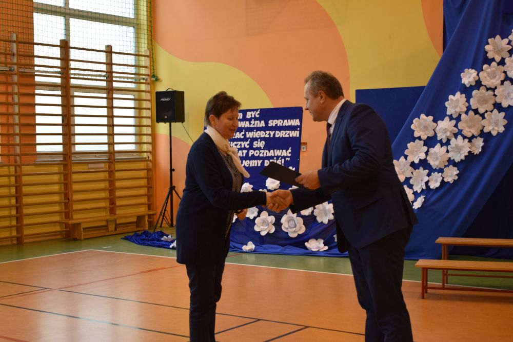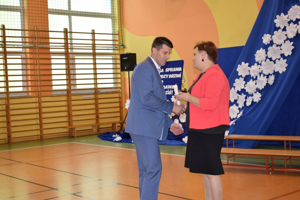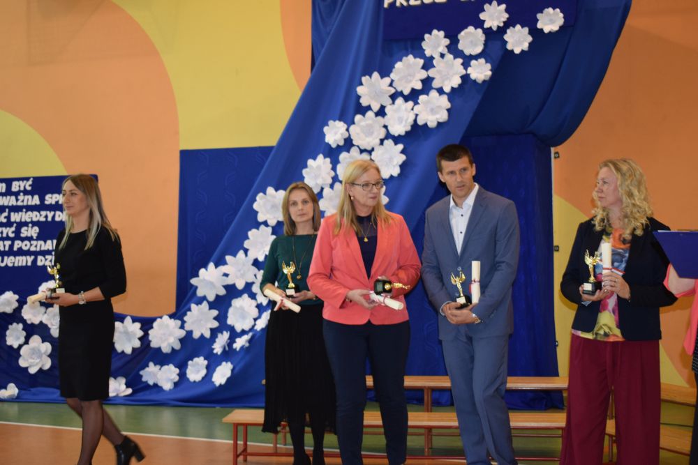 Z kolei głos zabrał Pan Wójt Jan Janiga, który wręczył nagrody Dyrekcji, nauczycielom, a uczniom szczególnie wyróżniającym się w nauce i sporcie – stypendia. Na zakończenie akademii Pani Dyrektor Aneta Janaś podziękowała nauczycielom za dotychczasowe zaangażowanie, życzyła wielu sił i wytrwałości w tym wyjątkowym zawodzie oraz wręczyła symboliczne Nagrody Dyrektora wyróżnionym pedagogom.