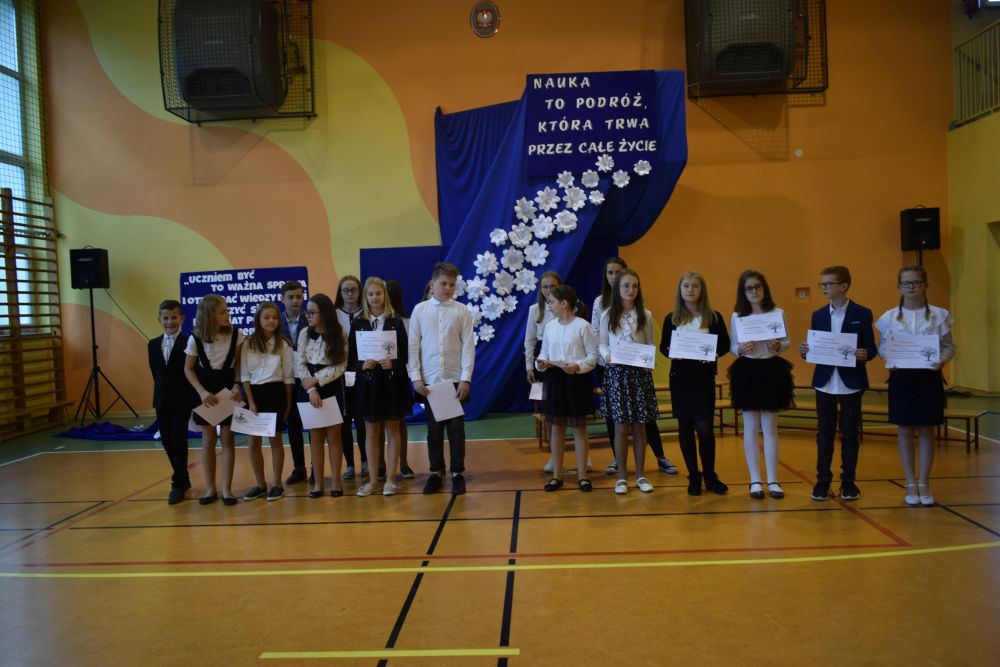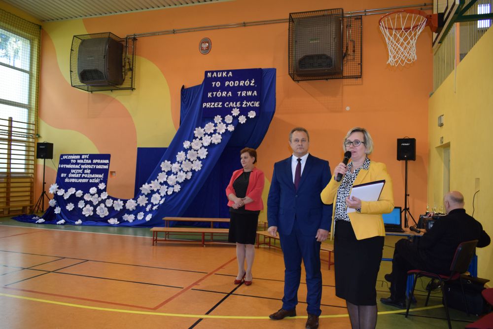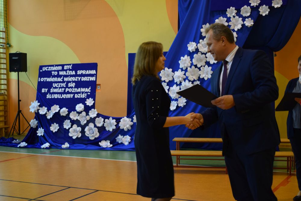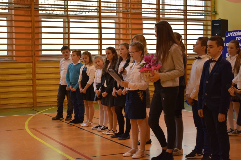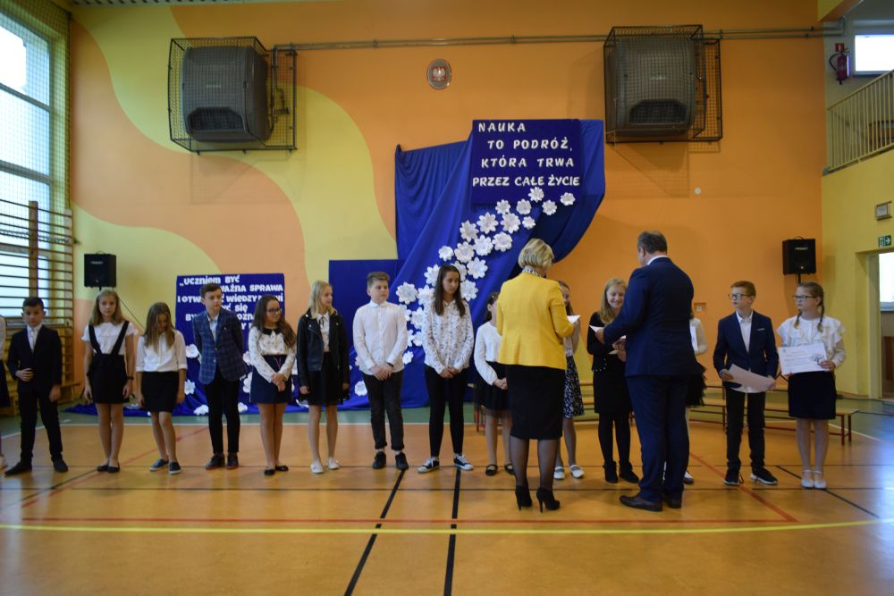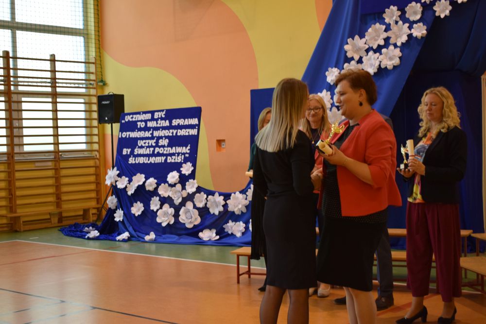 Z kolei głos zabrał Pan Wójt Jan Janiga, który wręczył nagrody Dyrekcji, nauczycielom, a uczniom szczególnie wyróżniającym się w nauce i sporcie – stypendia. Na zakończenie akademii Pani Dyrektor Aneta Janaś podziękowała nauczycielom za dotychczasowe zaangażowanie, życzyła wielu sił i wytrwałości w tym wyjątkowym zawodzie oraz wręczyła symboliczne Nagrody Dyrektora wyróżnionym pedagogom.