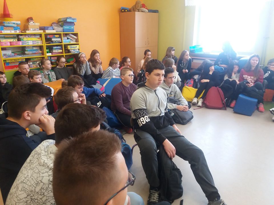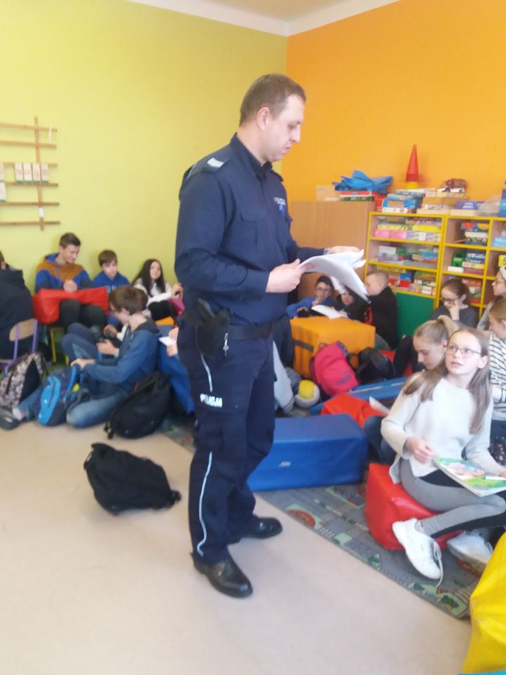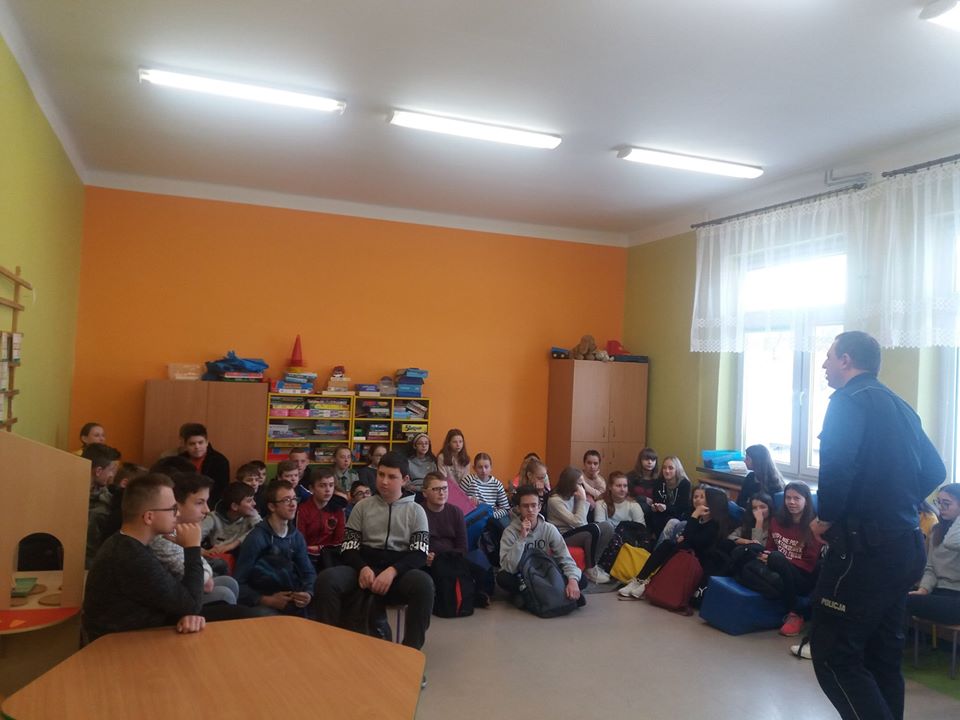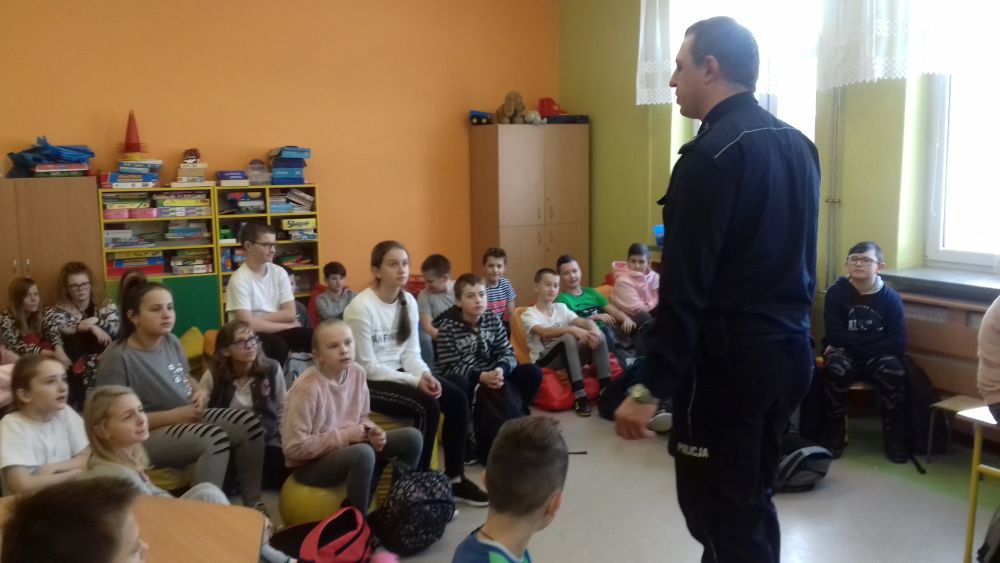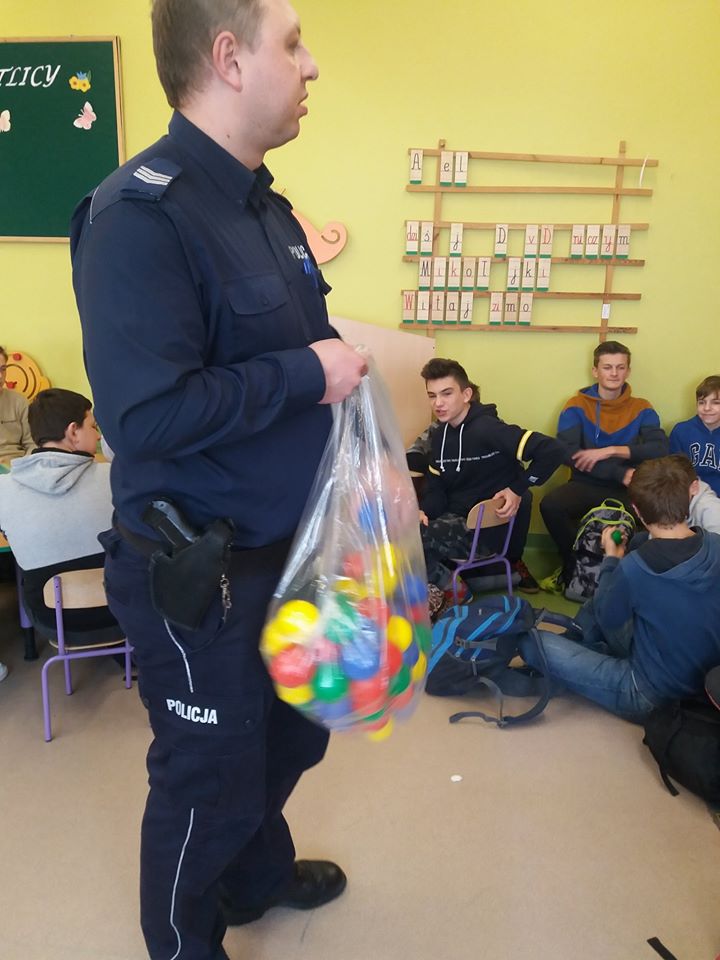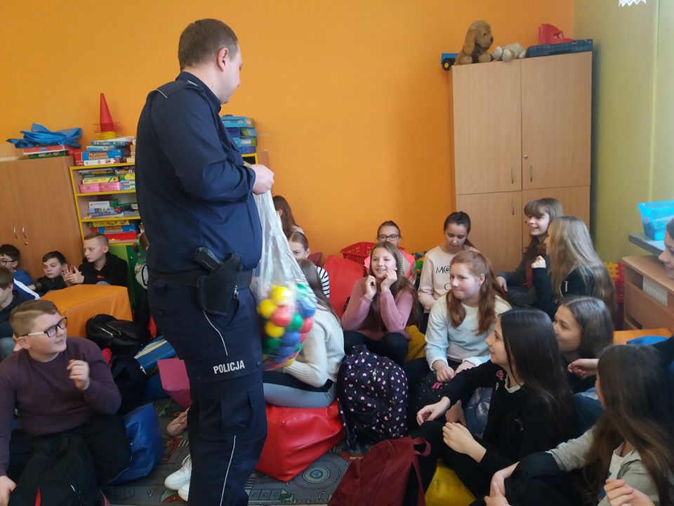 4 grudnia w naszej szkole odbyło się spotkanie profilaktyczne uczniów klas VI-VIII z dzielnicowym Rafałem Szotem. Tematem spotkania była przemoc w rodzinie, w szkole jak również sposoby radzenia sobie z tym problemem. Pan dzielnicowy poinformował również uczniów, gdzie mogą szukać pomocy w razie takiej potrzeby. Uczniowie wypełnili anonimową ankietę a na zakończenie spotkania każdy z nich otrzymał piłeczkę antystresową. Serdecznie dziękujemy.