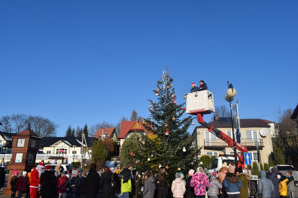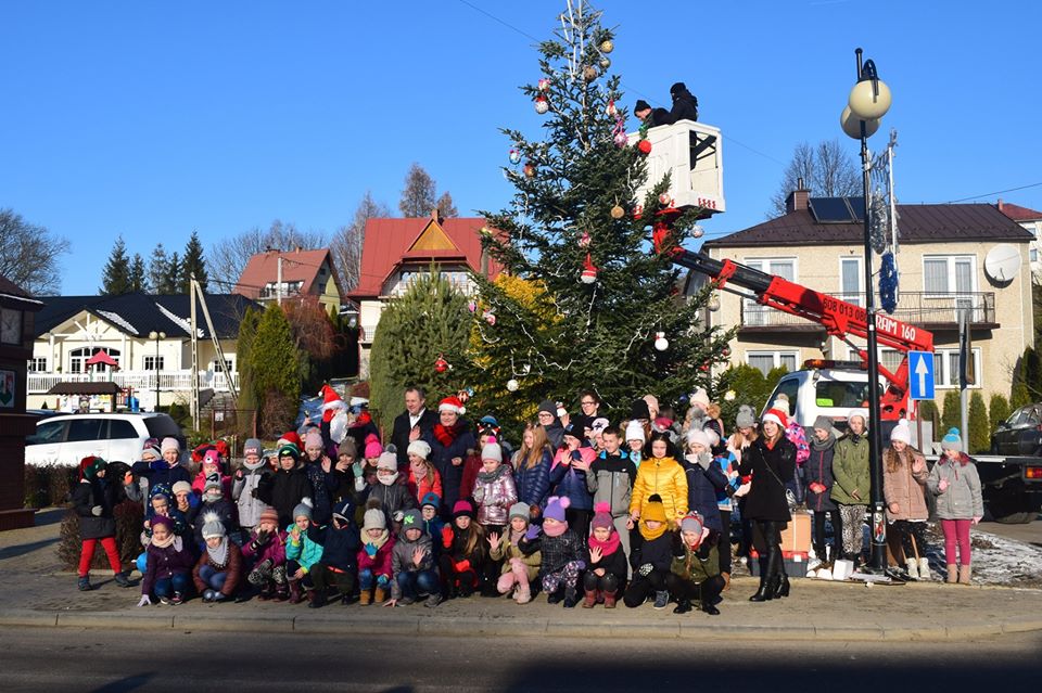 Wspólne ubieranie choinki Opublikowano: 06 grudzień 2019 6 grudnia ubieraliśmy gminną choinkę na rynku, wspólnie z uczniami ze wszystkich szkół gminy Jodłowa. Do pomocy przyłączyli się również dyrektorzy szkół i nauczyciele. Ozdoby przygotowane były własnoręcznie przez uczniów i nauczycieli.
