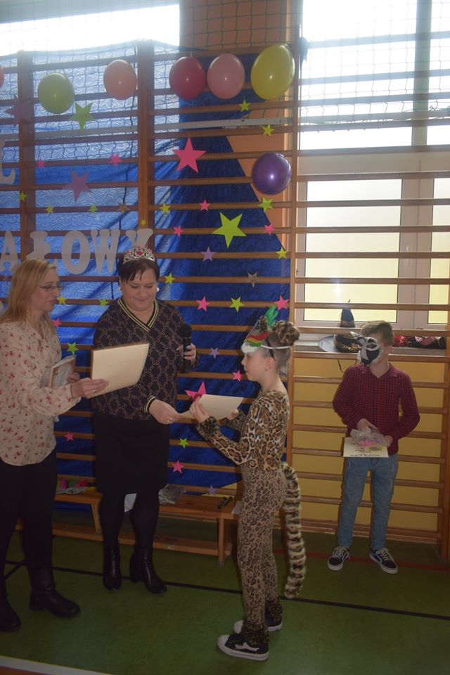 11 lutego w naszej szkole odbył się "Bal Karnawałowy". Uroczystość rozpoczęli pierwszoklasiści przygotowanym polonezem. Następnie Pani Dyrektor uroczyście otwarła bal. Zabawę dla klas "0" i I -III prowadziła Myszka Mini Mini, specjalnie zaproszona na tą okazję. Tańcom, zabawom towarzyszyły konkursy min. na maskę karnawałową czy też najśmieszniejszy taniec. Każde dziecko otrzymało również słodki poczęstunek przygotowany przez Radę Rodziców oraz balony od dyrekcji. Dziękujemy