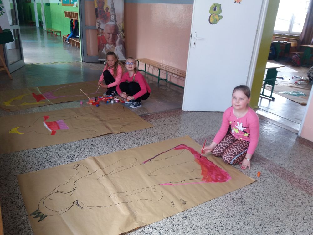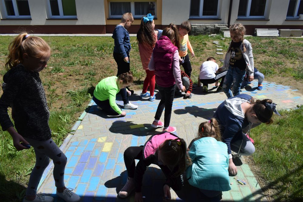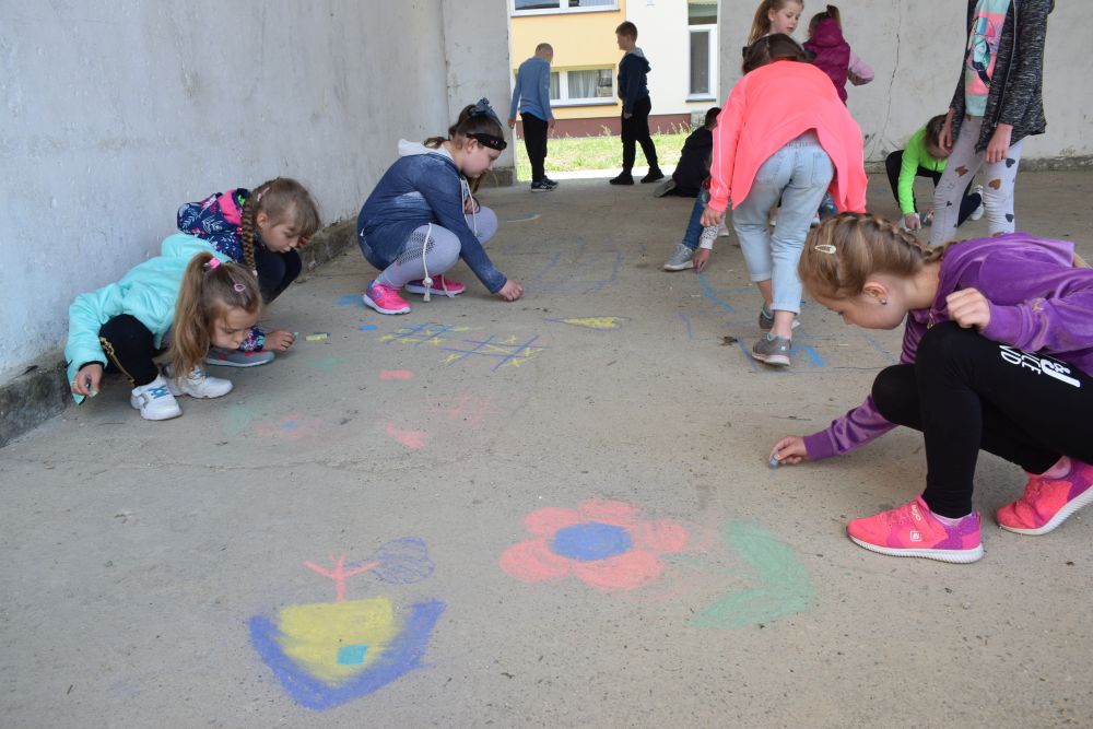 Dzisiaj w szkole świętowaliśmy Dzień Dziecka. Mimo zamieszania związanego z pandemią dzieciaki bawiły się znakomicie. Klasy pierwsze zorganizowały: malowanie twarzy, eksperymenty, seans filmowy z popcornem, gry edukacyjne i pyszne gofry. Uczniowie klas drugich rozpoczęli dzień na sportowo. Odwiedzili ich trenerzy Jodłowskiej Akademii Piłkarskiej „Diament”. Były zabawy ruchowe i krótkie mecze. Ku zaskoczeniu wszystkich, jeden z trenerów okazał się wspaniałym kucharzem i zademonstrował dzieciom jak zrobić pyszne i kolorowe gofry. Drugoklasiści wykorzystali również piękną pogodę i zamalowali chodnik kolorową kredą. Uczniowie klas trzecich postawili na działalność artystyczną: śpiewali piosenki, odrysowywali własne kontury na dużych kartonach szarego papieru i oczywiście zajadali się pysznymi goframi. Słońce, które wyszło zza chmur zachęciło ich do wyjścia na orlik i plac zabaw. To był wspaniały dzień!